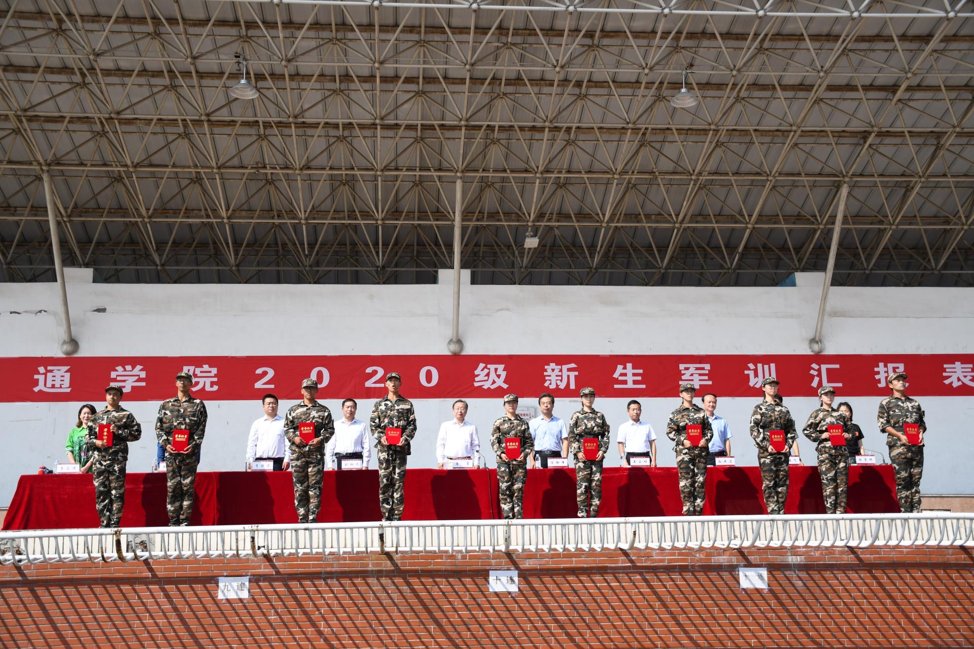 军训团相关负责同志宣读《关于表彰2020级新生优胜连队、军训标兵的通报》,向受表彰的军训标兵代表颁发荣誉证书,参训学生代表向优胜连队教官赠送鲜花。2020级新生代表在发言中表达了对参训教官的感谢和对大学生活的向往与期待。