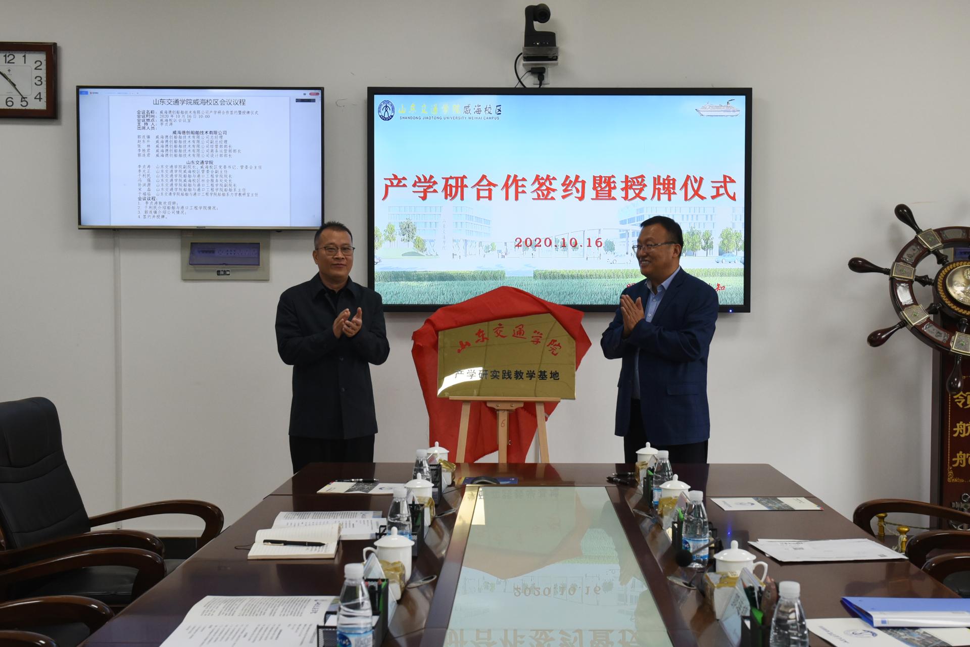 为加强产教融合,深化校企合作,实现双方优势互补、资源共享,拓展学生实习与就业平台,10月16日,船舶与港口工程学院与威海德创船舶技术有限公司在威海校区会议室举行产学研合作签约暨授牌仪式,学校副院长李贞涛出席仪式并为威海德创船舶技术有限公司授牌。