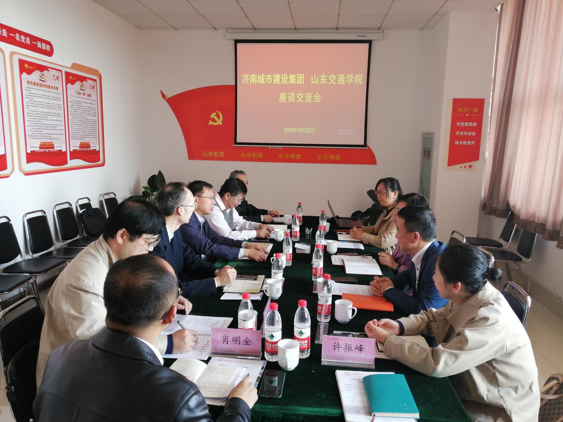姜华平向姜秀杰一行表示欢迎,详细介绍了我校发展历史、交通特色专业格局、应用型科研成果和典型转化项目,表示希望与济南城市建设集团在产学研等方面进一步深入合作,共谋发展。