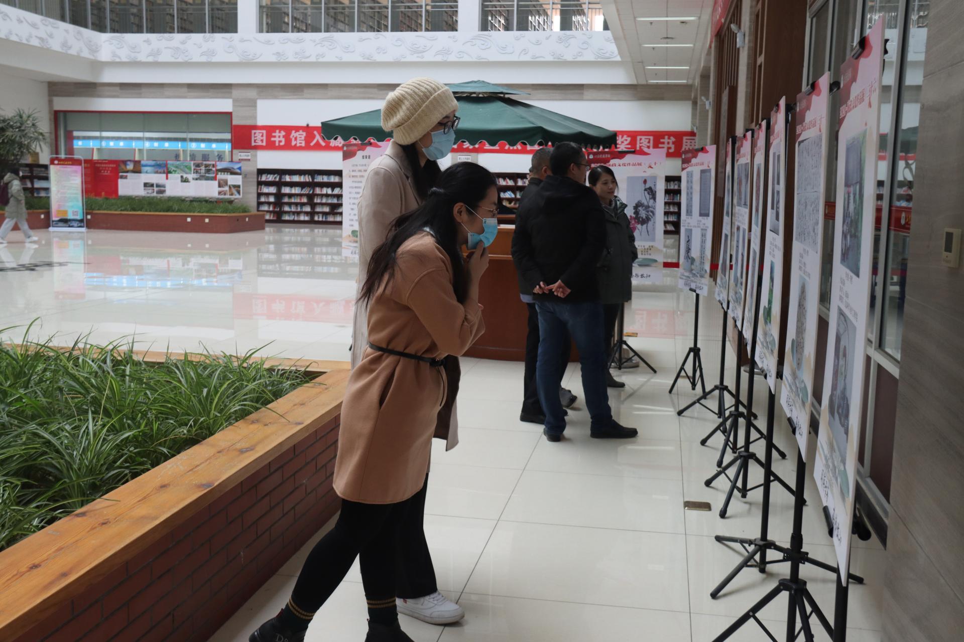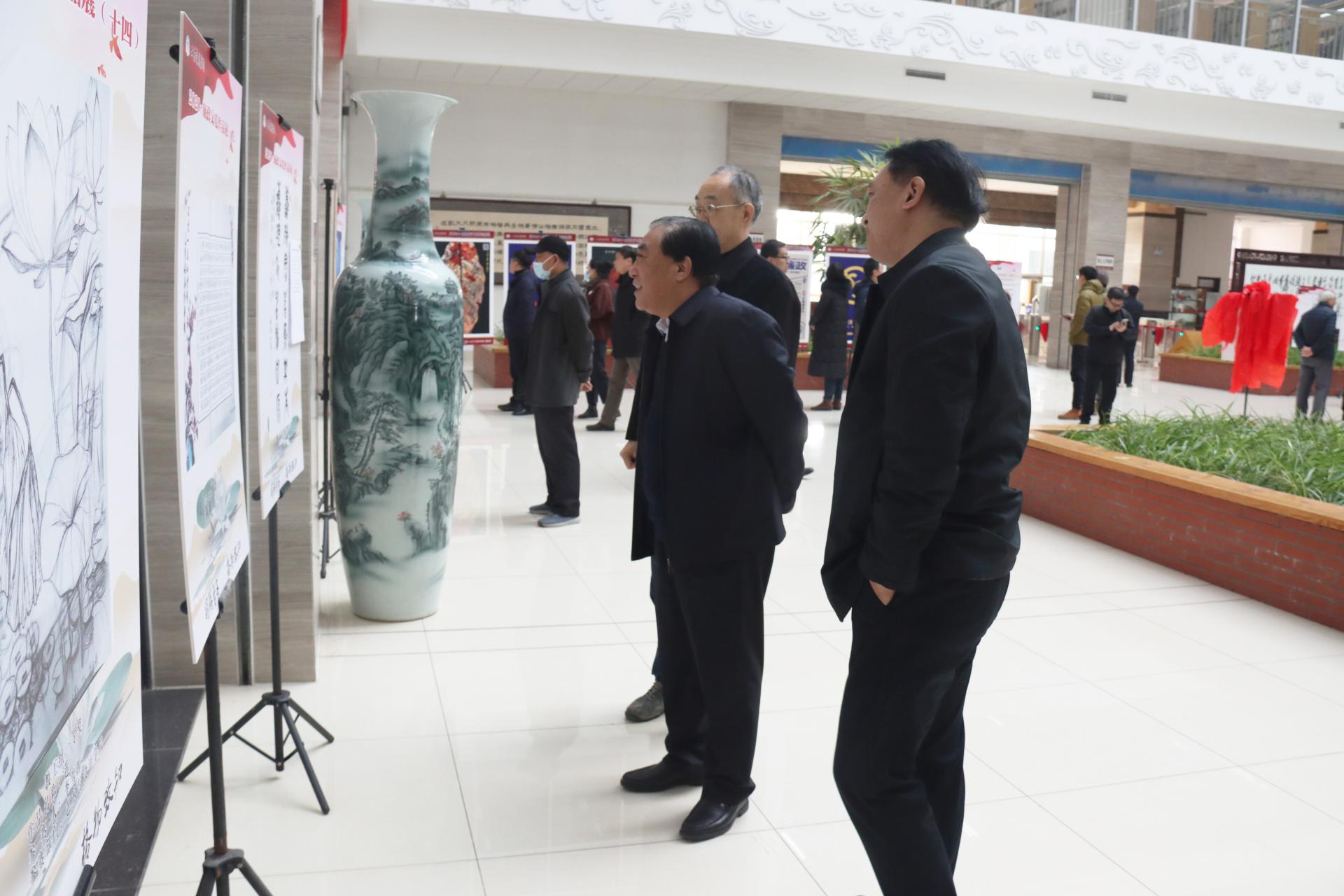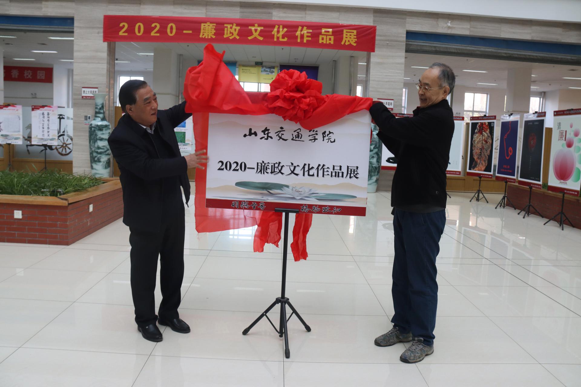 12月4日上午,学校廉政文化作品大赛优秀作品展在图书馆一楼大厅举行。党委书记王焕斌, 党委委员、纪委书记、监察专员贾洪江出席活动并为开幕式揭牌。