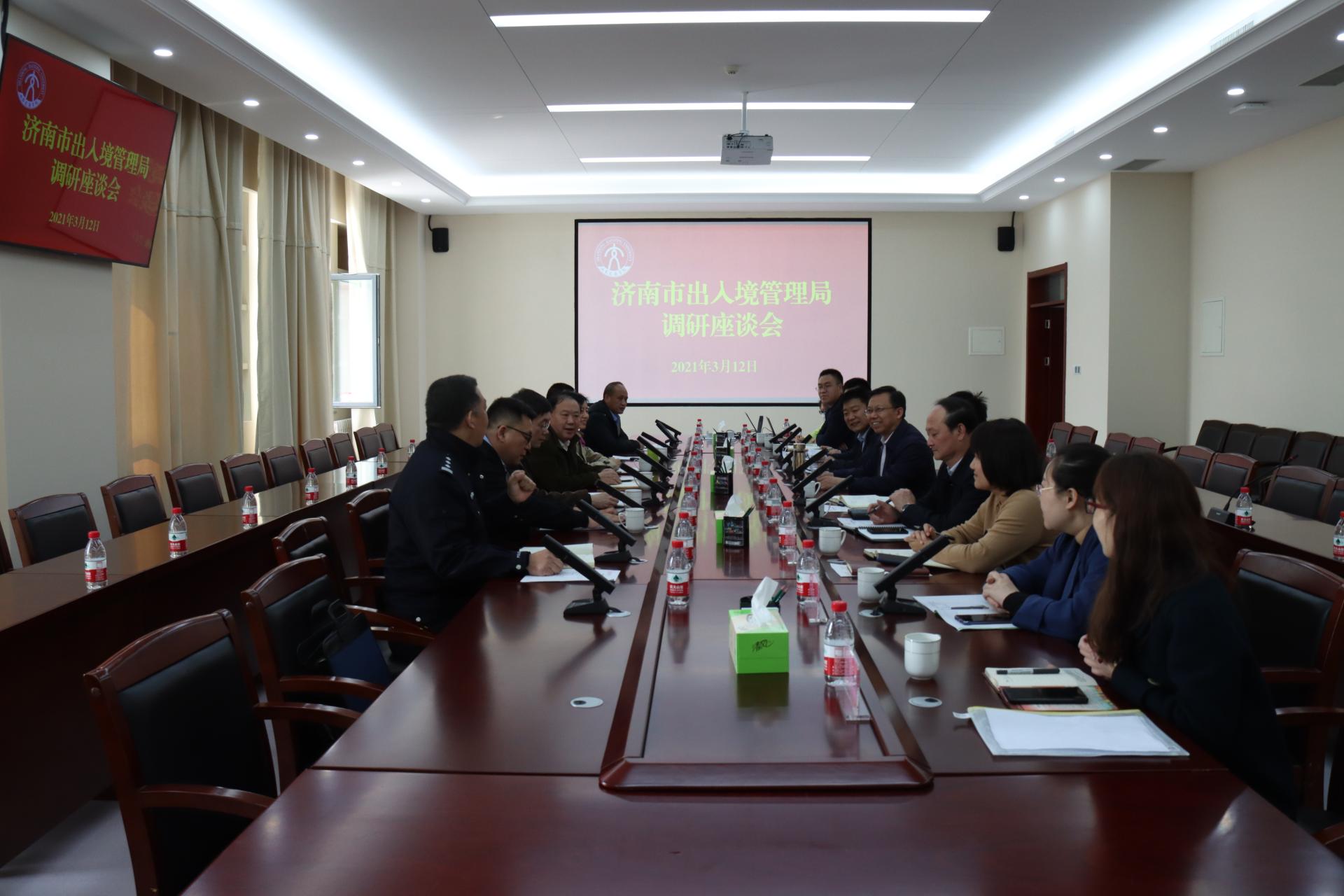 3月12日下午,济南市出入境管理局局长孙峻一行5人到我校长清校区调研外籍人员管理情况并举行座谈会。会前,党委书记王焕斌在长清校区明德楼贵宾接待室会见客人。党委委员、副院长姜华平同客人进行了座谈交流。
