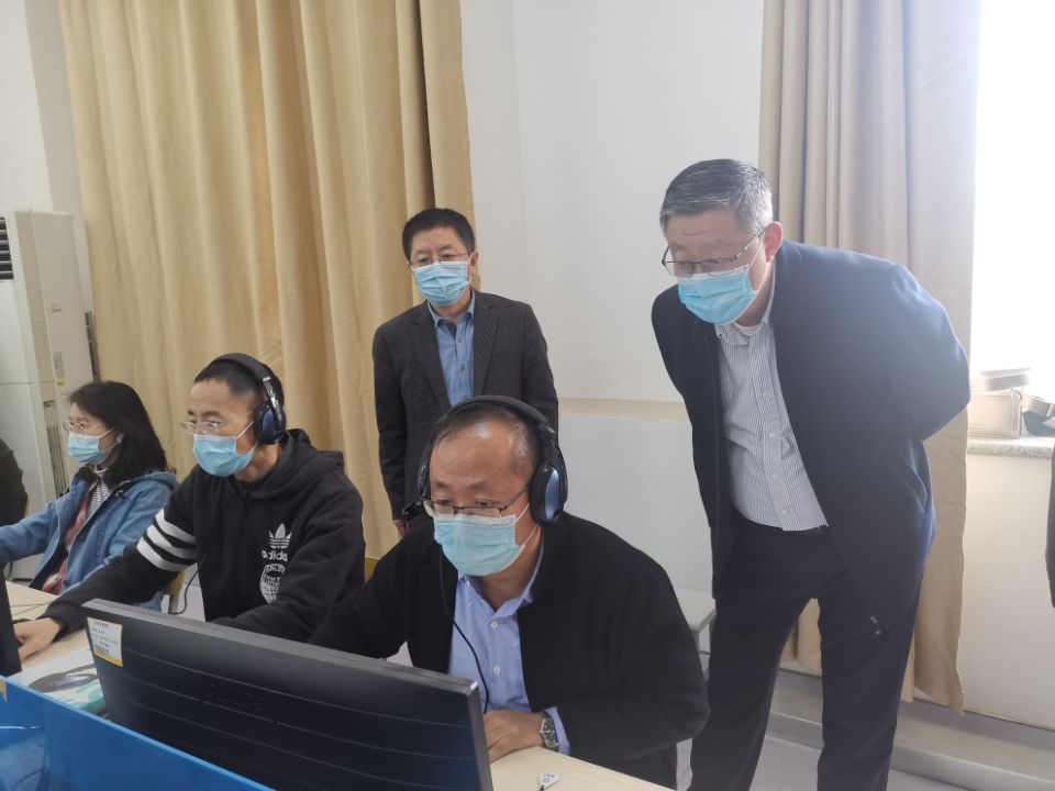 陈松岩、张化祥巡视了监考现场,要求各位老师做好考试线上监考工作,为考生们提供一个公平、公正、有序的考试环境,同时对考生线上考试期间出现的问题及时予以解决。