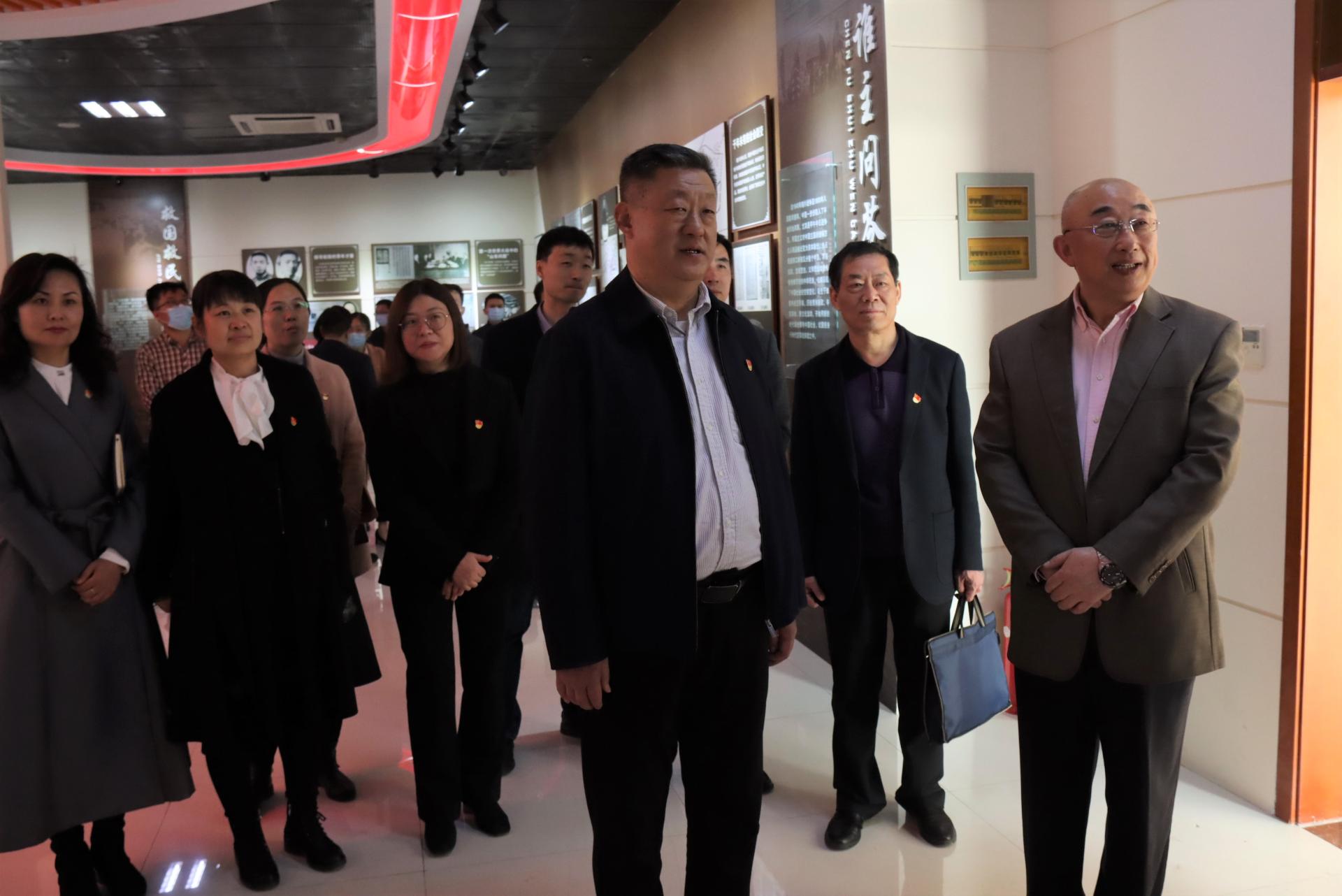 陈松岩与王军亲切交谈,表达了对革命先烈王尽美的敬意和哀思。他表示,王尽美同志短暂而又辉煌的一生诠释了为国为民的革命大无畏精神和爱国主义精神,此次实地党史学习教育,是要近距离重温革命历史,弘扬红色精神,确保党史学习教育收实效、见真章。他号召在场的师生党员,要把“尽美精神”传承好、弘扬好、实践好, 进一步涵养初心使命,坚定理想信念,勇担时代责任,发挥专业优势,以更加昂扬的斗志、饱满的热情、蓬勃的朝气投身于学习、工作中。陈松岩还询问了王尽美后代及家乡的一些情况。