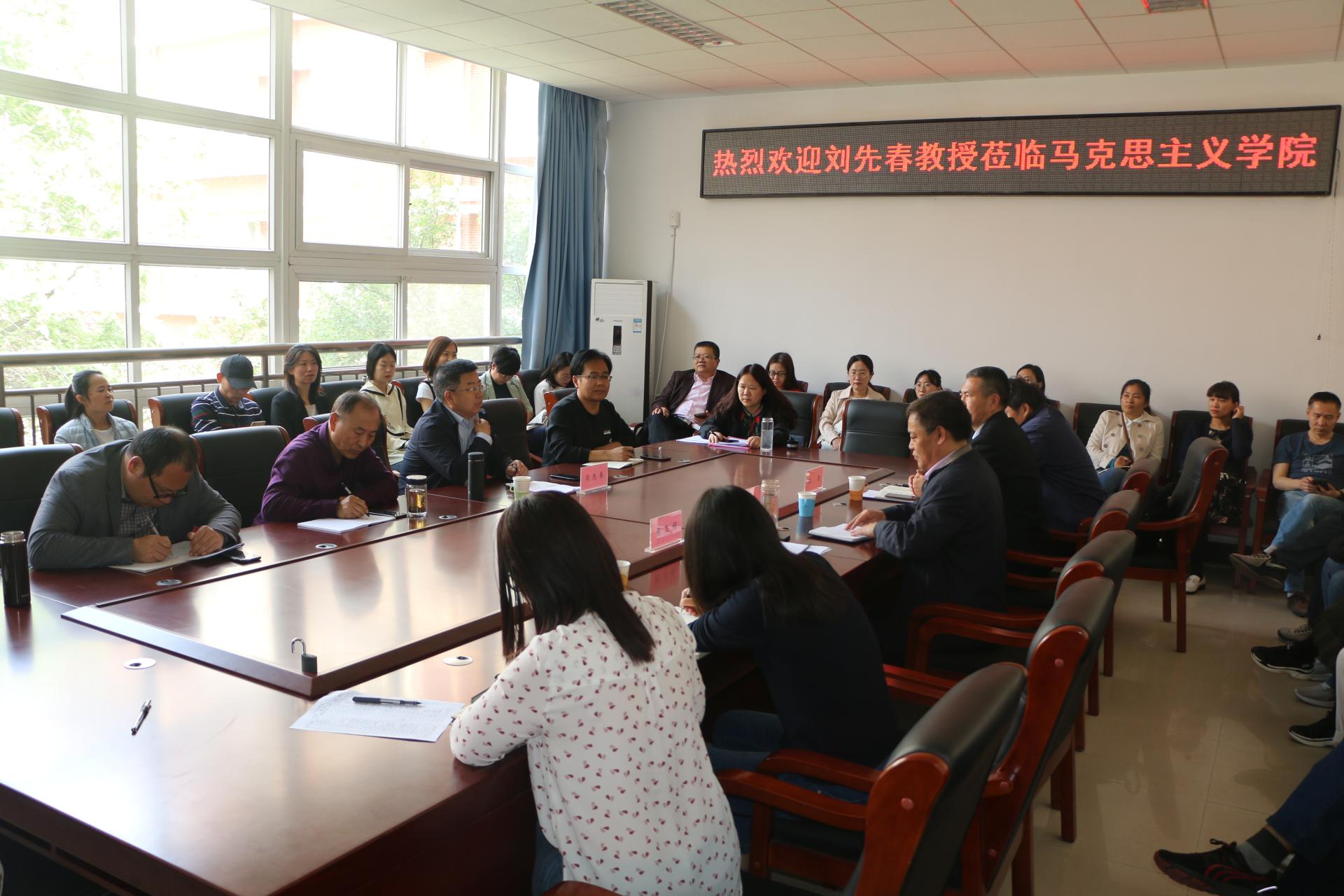 当日上午,刘先春来到马克思主义学院,与思政课教师就思政课的地位、思政课教师的责任、意识形态阵地建设、马克思主义学院建设、马克思主义理论学科建设、教学科研经验等相关问题开展交流。他表示,青年思政课教师要教学科研两手抓,因时而进、因势而新,不断增强自己的理论功底和学识修养,以科学的理论铸魂育人,同时要注重做好科研规划,勤奋工作,锲而不舍取得科研成果。