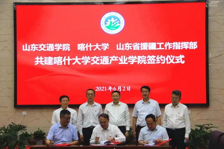 张成伟指出,开展对口援疆工作既是中央交给山东的光荣政治任务,也是山东的分内之事、应尽之责。此次山东交通学院、喀什大学、山东省援疆工作指挥部携手合作,是贯彻落实第三次中央新疆工作座谈会精神的重要举措,是落实教育部“对口支援西部地区高等学校计划”和“山东省对口支援新疆计划”的具体行动,意义重大、影响深远。山东省援疆工作指挥部将充分发挥桥梁纽带作用,在推动校地、校际、校企融合发展等方面不遗余力地提供支持,并以此次合作框架协议签订为契机,持续加大合作力度、拓展合作领域、深化合作内涵、提升合作成效,为推动鲁疆两地教育事业高质量、可持续、内涵式发展,为建设团结和谐、繁荣富裕、文明进步、安居乐业、生态良好的新时代中国特色社会主义新疆作出新的贡献,以优异成绩向建党100周年献礼。