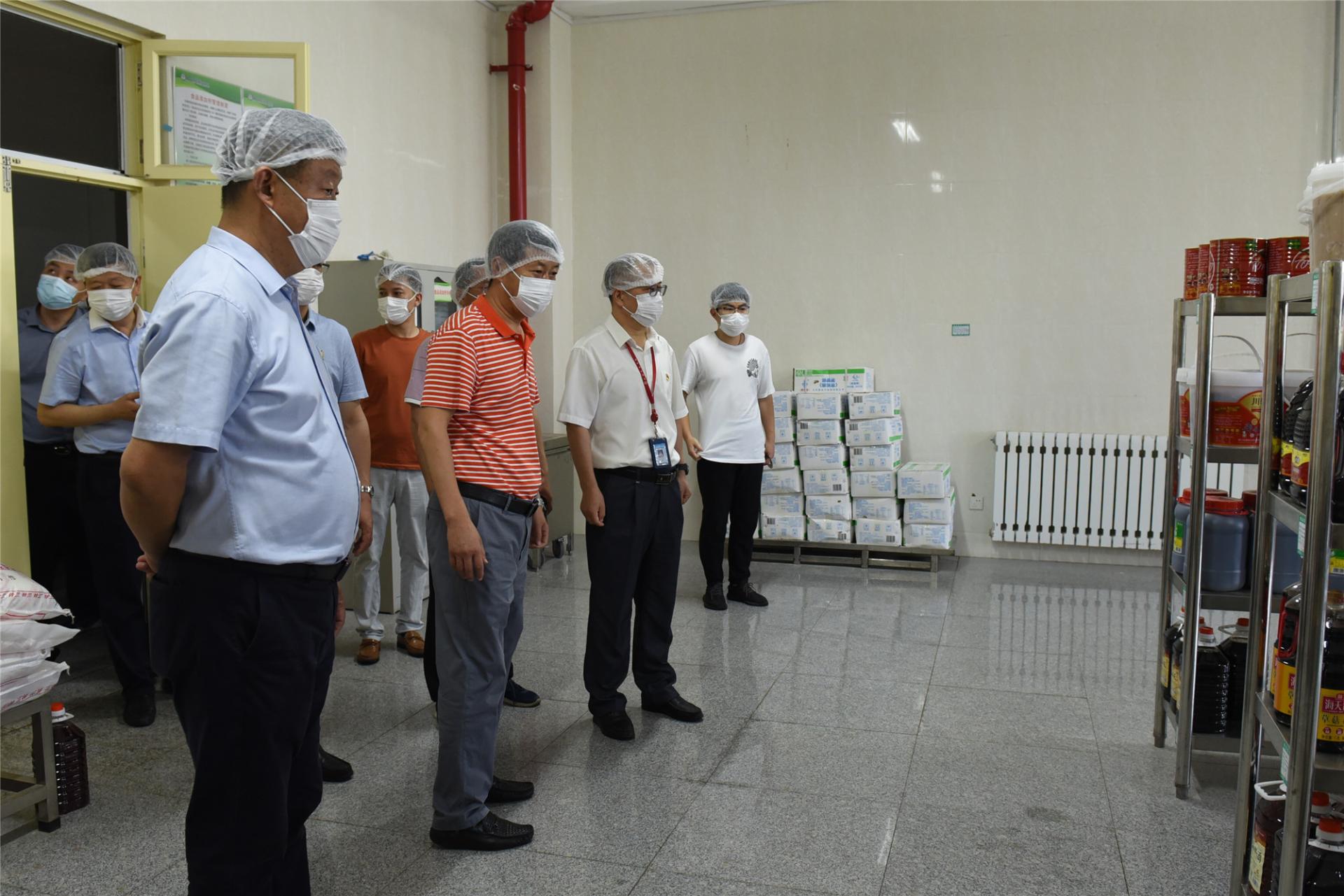 党委副书记、院长陈松岩率检查组到威海校区食堂操作间和库房进行督导检查,听取了食品安全控制流程介绍,详细了解了原料采购、加工、售卖等各环节情况。