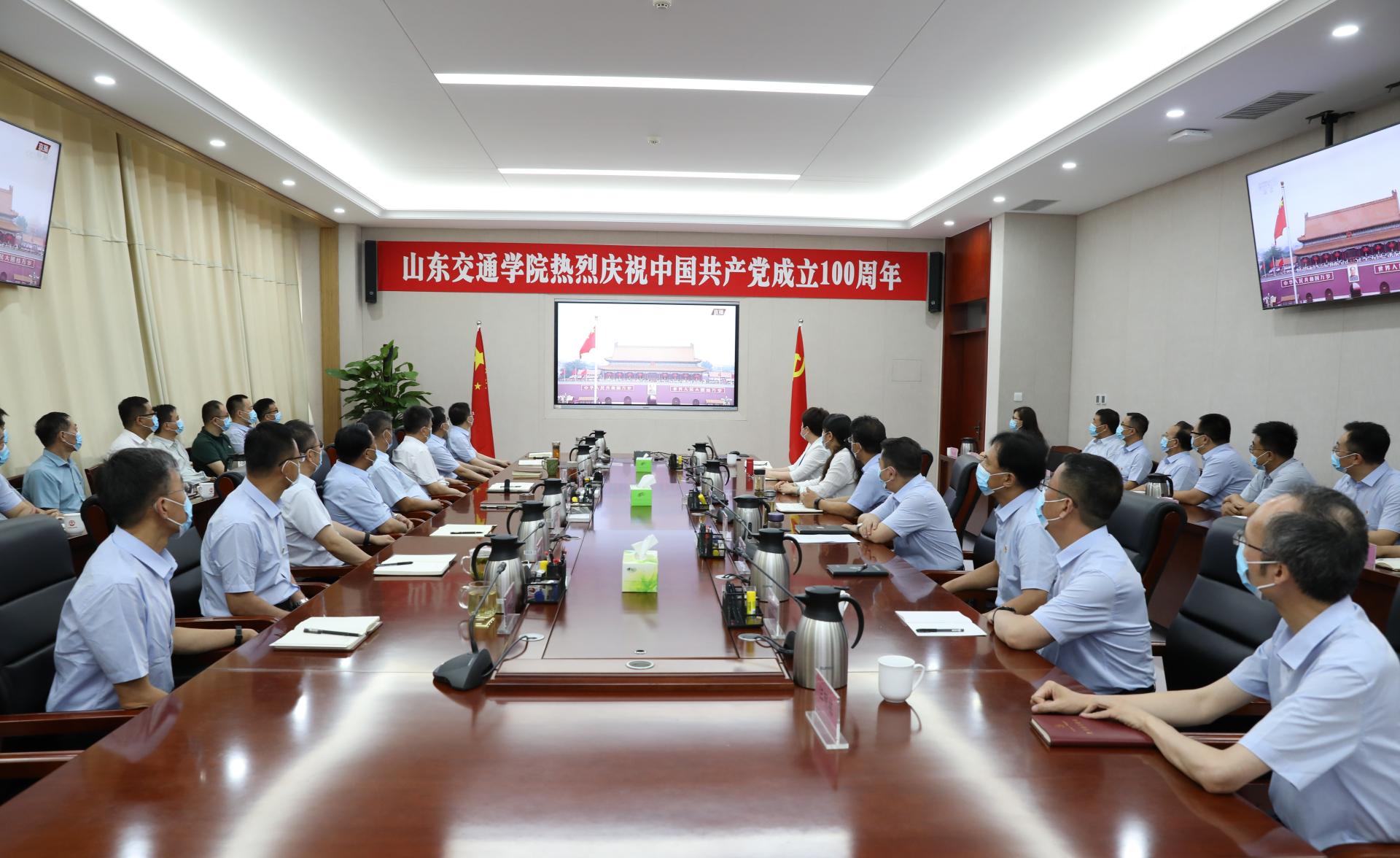 7月1日上午,庆祝中国共产党成立100周年大会在北京天安门广场隆重举行。中共中央总书记、国家主席、中央军委主席习近平出席大会并发表重要讲话。学校党委领导班子成员及各单位(部门)主要负责人在长清校区明德楼会议室集中收听收看大会实况直播,各基层党委(党总支)通过各种形式组织党员干部师生收听收看。习近平总书记的重要讲话在学校师生中引起强烈反响和热议。