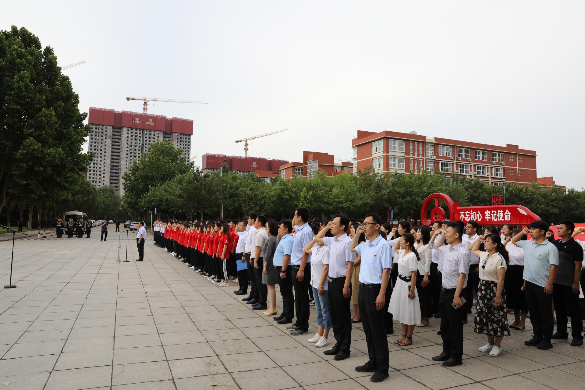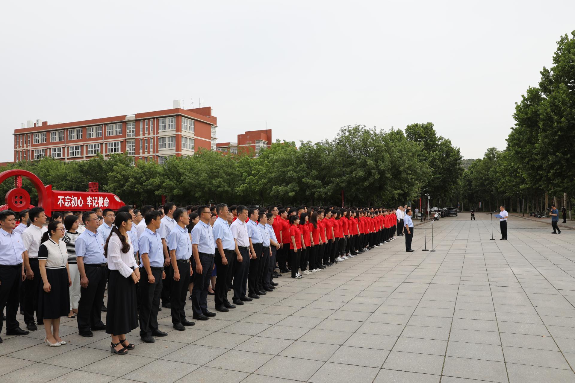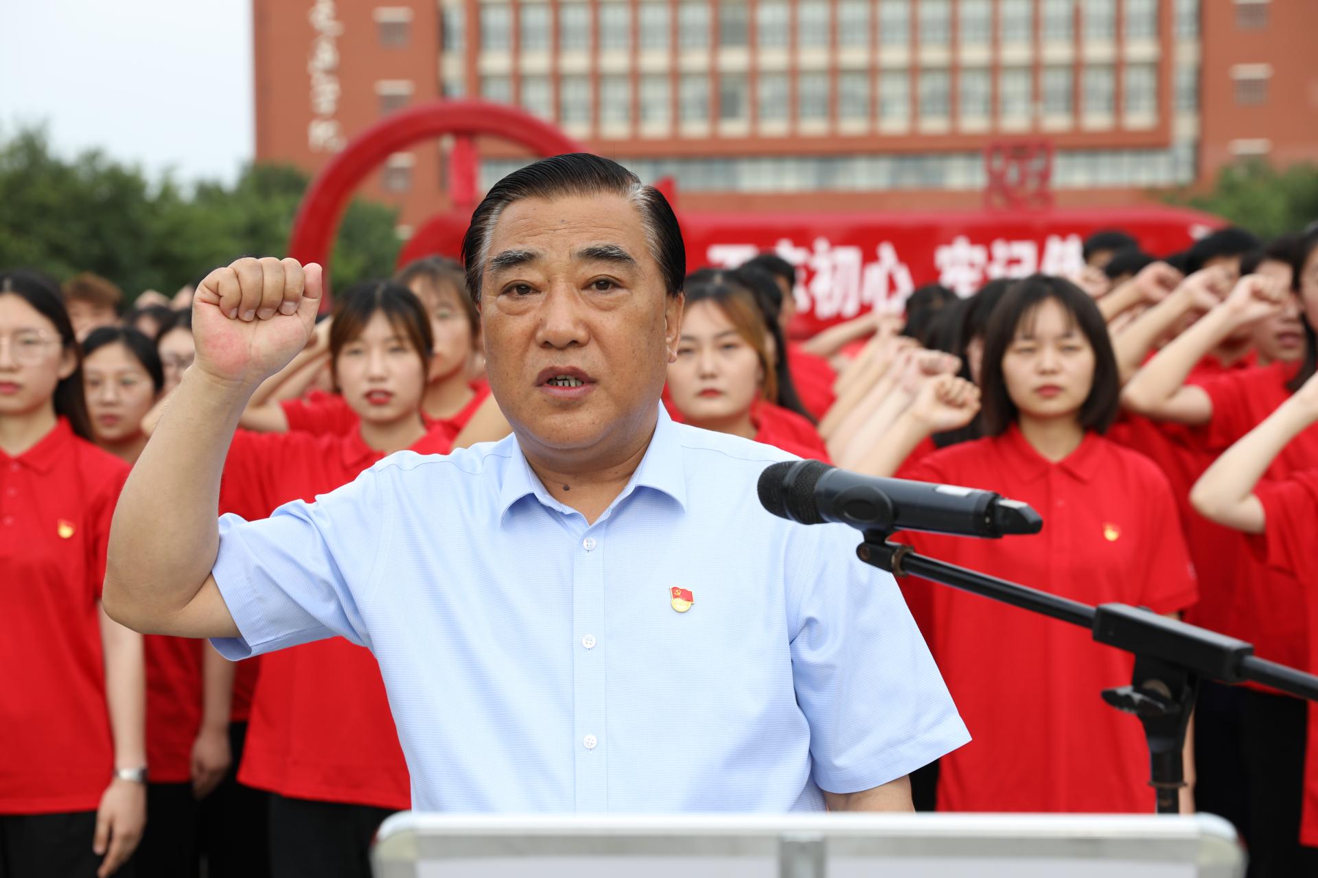 党委书记王焕斌带领新党员入党宣誓、老党员重温入党誓词。师生党员们郑重地举起右手,庄严宣誓,表达对党忠诚、为共产主义事业奋斗终身的决心,以崇高的敬意,共同庆祝中国共产党成立100周年。