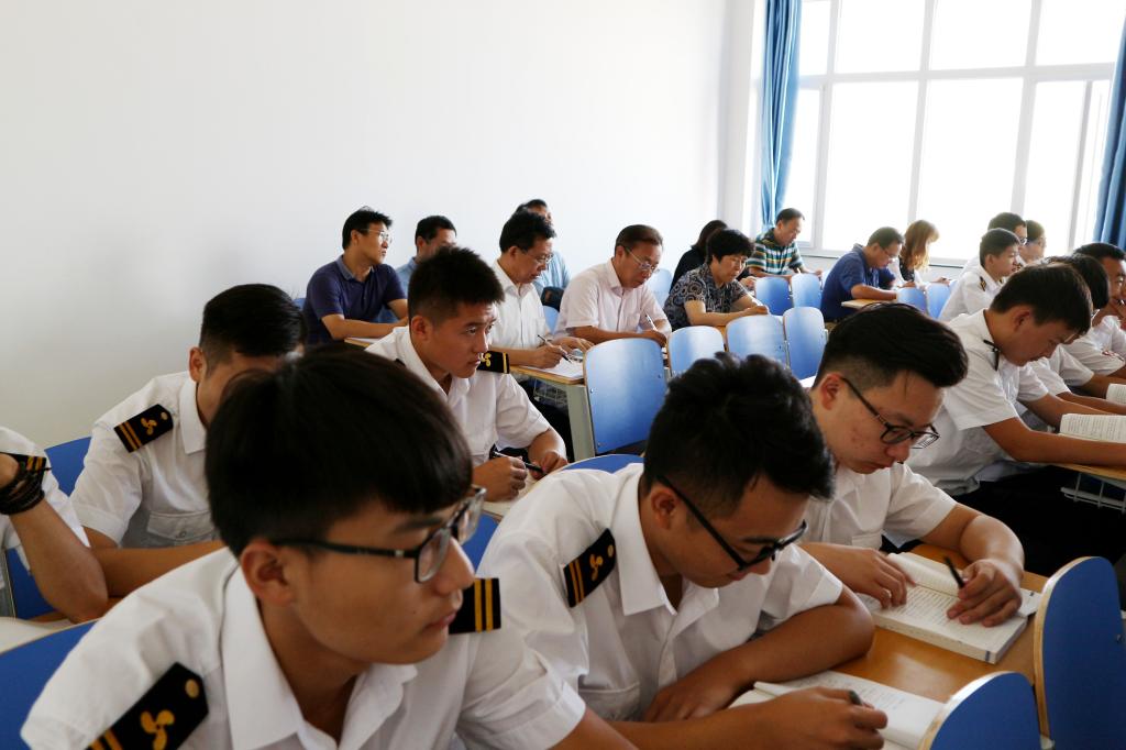 为深入贯彻落实全国全省高校思想政治工作会议精神,了解威海校区思想政治工作开展情况,9月13日,学校党委书记孙秀丽、党委副书记唐勇到威海校区实地调研思想政治工作,深入思想政治理论课堂听课调研,召开威海校区贯彻落实全国全省思想政治工作会议精神座谈会和船舶与轮机工程学院教师座谈会,慰问承担威海校区2017级新生军训任务的山东海警某大队官兵和2017级新生军训团成员并视察军训现场。副院长、威海校区党委书记、管委会主任姜华平陪同调研。