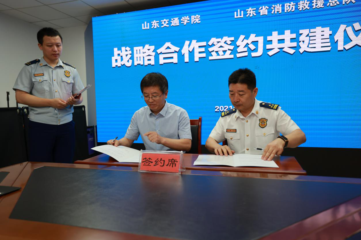 8月13日,山东省消防救援总队与山东大学、山东师范大学、齐鲁工业大学、山东财经大学、山东建筑大学、山东交通学院等六所高校签订战略合作协议。我校党委委员、副院长张化祥代表学校参加签约仪式。