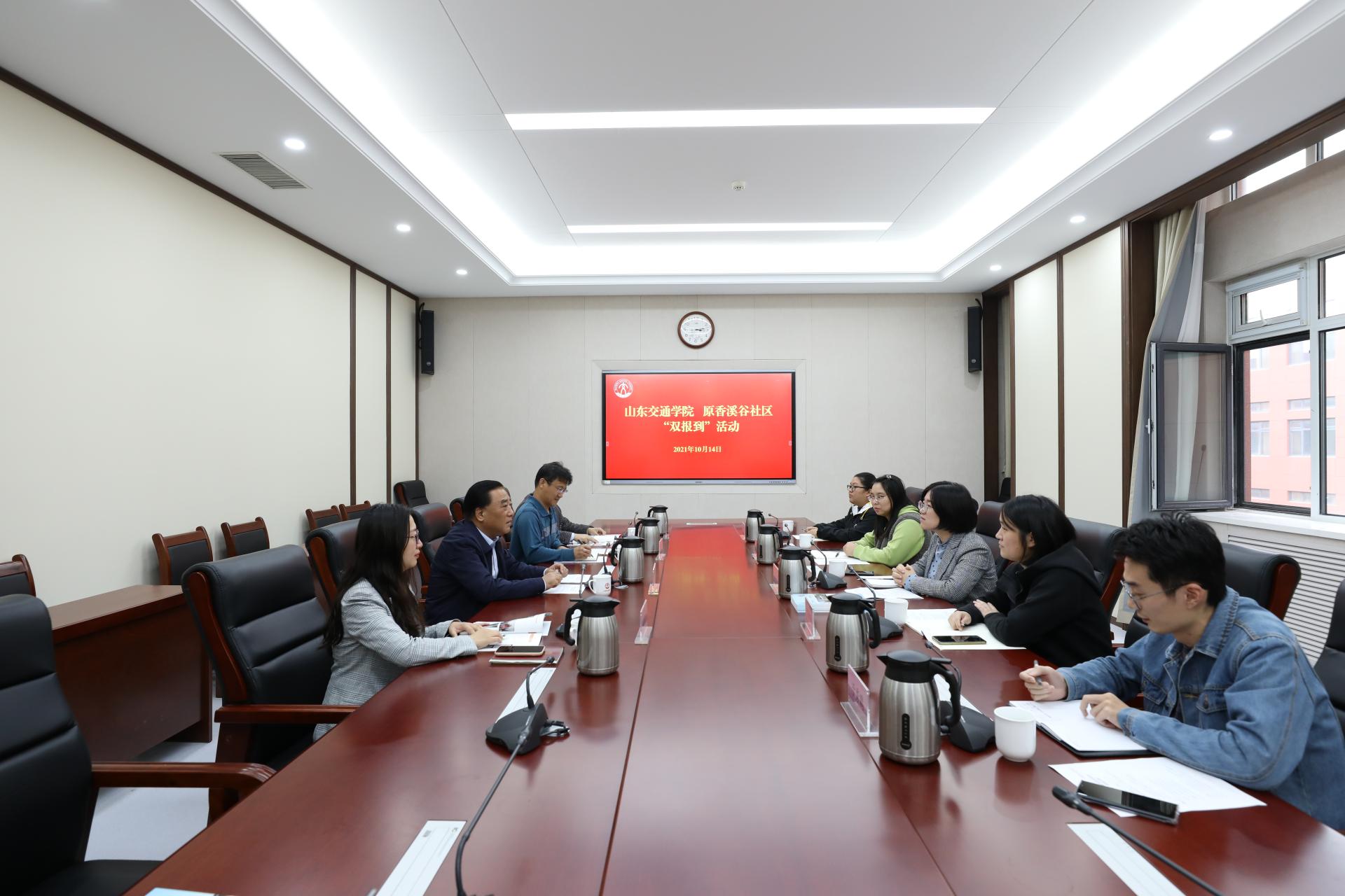 10月14日下午,学校与原香溪谷社区在长清校区明德楼302会议室开展“双报到”活动。党委书记王焕斌,党委委员、党委组织部部长田杰昌,原香溪谷社区书记兼居委会主任程秀一行五人参加活动。活动由田杰昌主持。