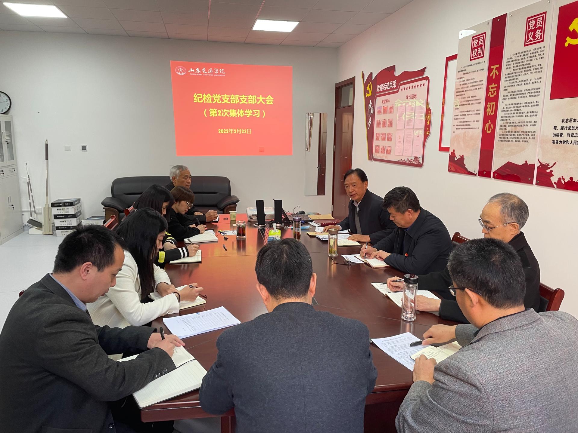 会上,全体党员集体学习了《中国共产党第十九届中央纪律检查委员会第六次全体会议公报》《中国共产党山东省第十一届纪律检查委员会第七次全体会议公报》《中共山东交通学院委员会关于印发学校2022年工作要点的通知》,传达了基层党委(党总支)书记会议精神,研究了2022年学校纪检监察工作要点。