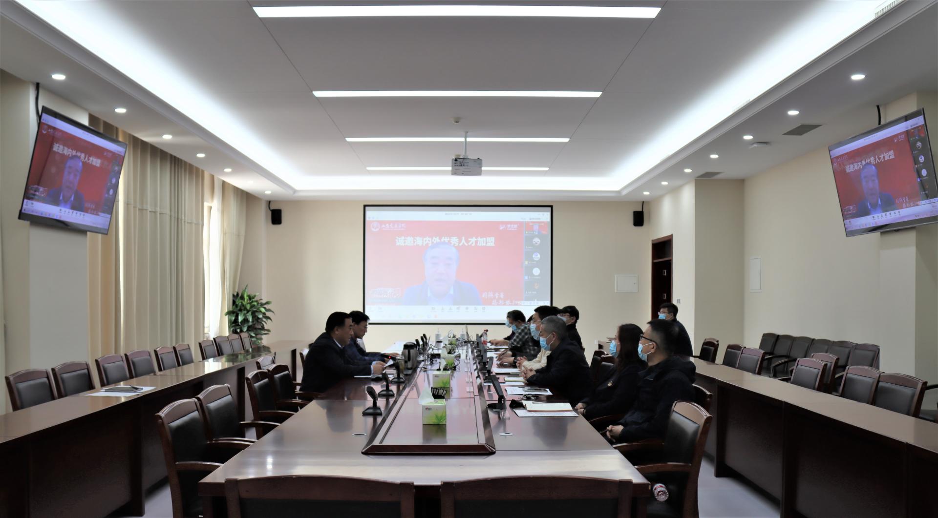 4月8日,学校在长清校区明德楼301会议室举行了全球视频“云”招聘启动仪式。党委书记王焕斌,党委委员、副院长来逢波出席会议。会议由来逢波主持。