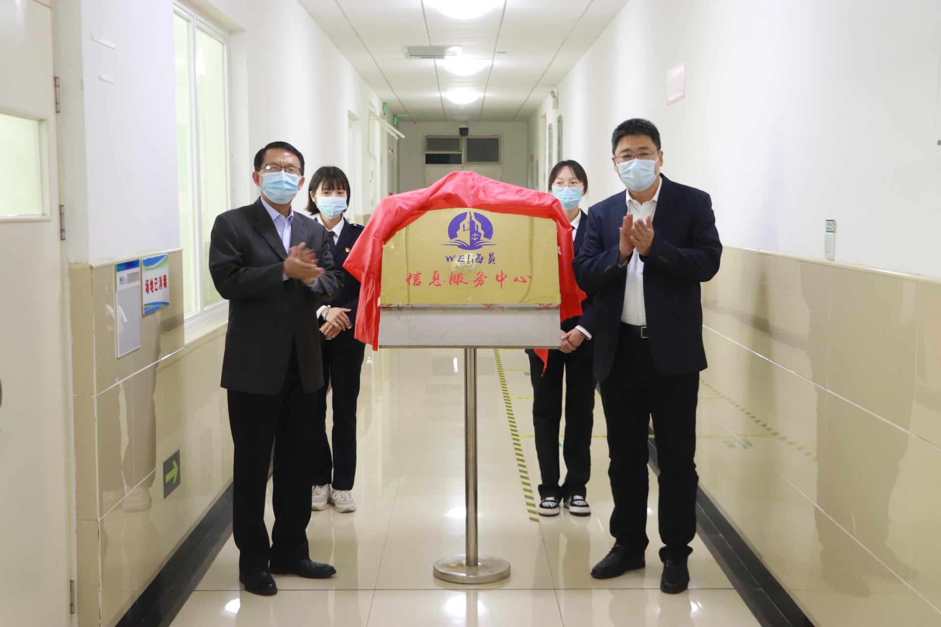 会前,姜华平陪同张向上一行参观了威海校区“WE!海员”信息服务平台工作室。姜华平、张向上共同为“WE!海员”信息服务中心揭牌,听取了威海校区社会服务部负责人关于工作室建设规划、功能定位的介绍,观看了“WE!海员”门户网站和微信公众号展示。