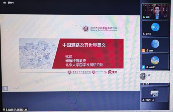 5月11日,北京大学国家发展研究院院长、中国经济研究中心主任、南南合作与发展学院执行院长姚洋教授为我校师生作《中国道路及其世界意义》线上学术报告。报告会由学校党委委员、副院长来逢波主持。