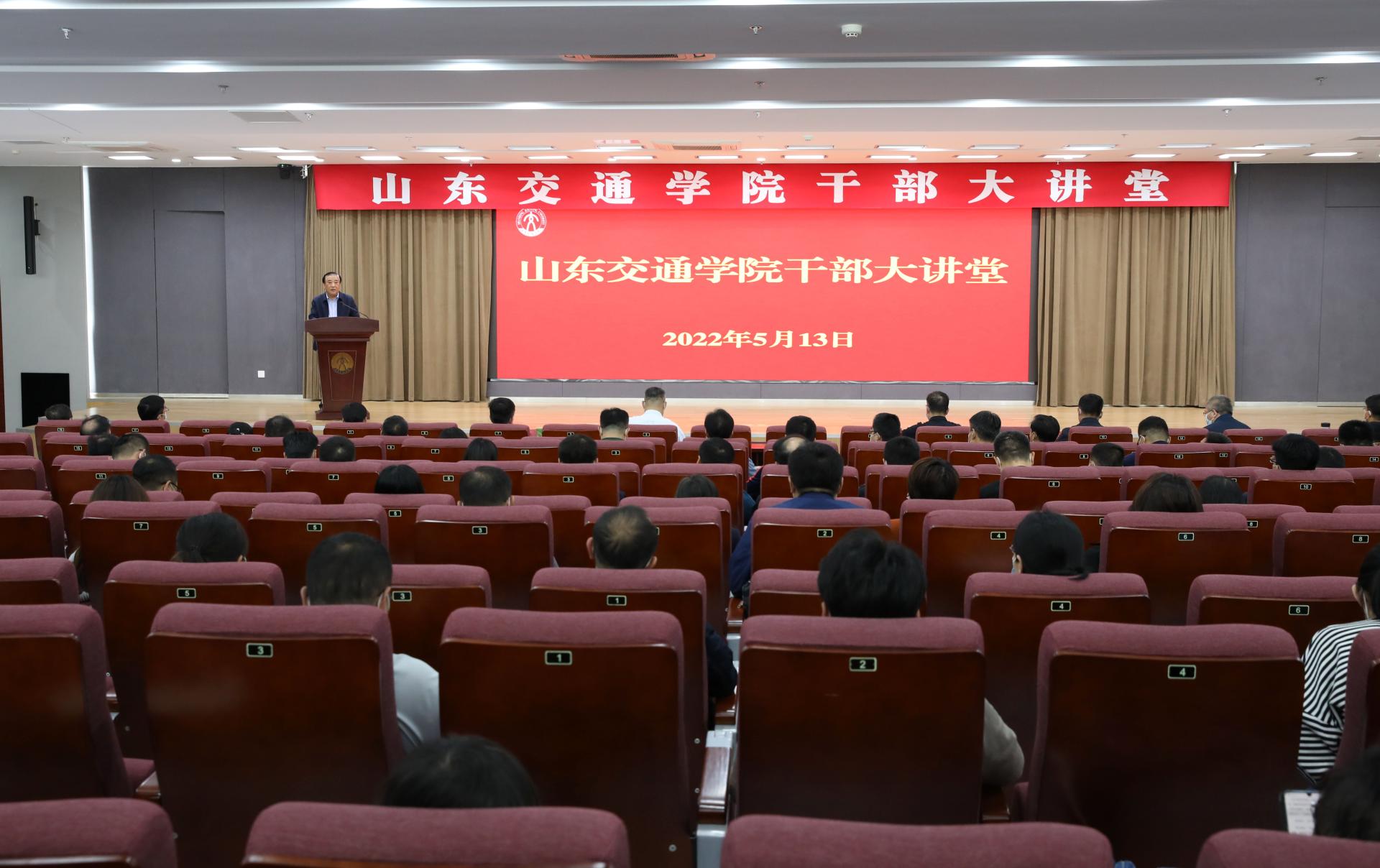 为进一步提升学校领导干部的专业能力和专业精神,5月13日下午,学校在长清校区明德楼101报告厅举办“干部大讲堂”第一讲暨党委理论学习中心组(扩大)集体学习。山东省委党校教授、硕士生导师栾盛磊作《高校领导干部媒介素养与舆情管理能力提升》专题报告。学校党委领导班子成员参加报告会。党委书记王焕斌作动员讲话并主持会议。