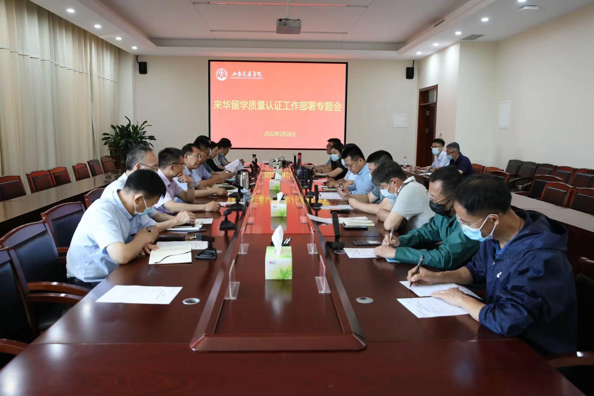 5月26日上午,学校在长清校区明德楼301会议室召开来华留学质量认证工作部署专题会。党委委员、副院长姜华平出席并主持会议。