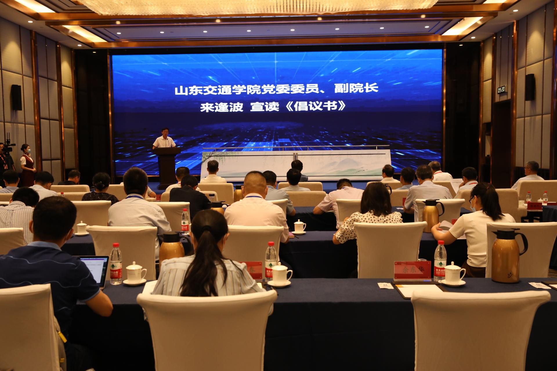 省教育厅副厅长孙晓筠,省科学技术厅党组成员、副厅长潘军,省交通运输厅党组成员、副厅长司家军出席会议并致辞;长安大学党委副书记、校长沙爱民,兰州交通大学副校长陈兴冲,内蒙古大学党委委员、交通学院党委书记孙智凭,太原科技大学交通与物流学院院长晋民杰;山东省海洋科学研究院党组成员、副院长黄祖亮;山东交通学院党委书记王焕斌,党委副书记、院长陈松岩,党委委员、副院长来逢波,党委委员、党委办公室(学校办公室)主任、党委统战部部长王晨晖;以及济南市教育局、科技局,长清区政府、交通运输局,济南新旧动能转换起步区相关领导出席成立大会。会议由王焕斌主持。
