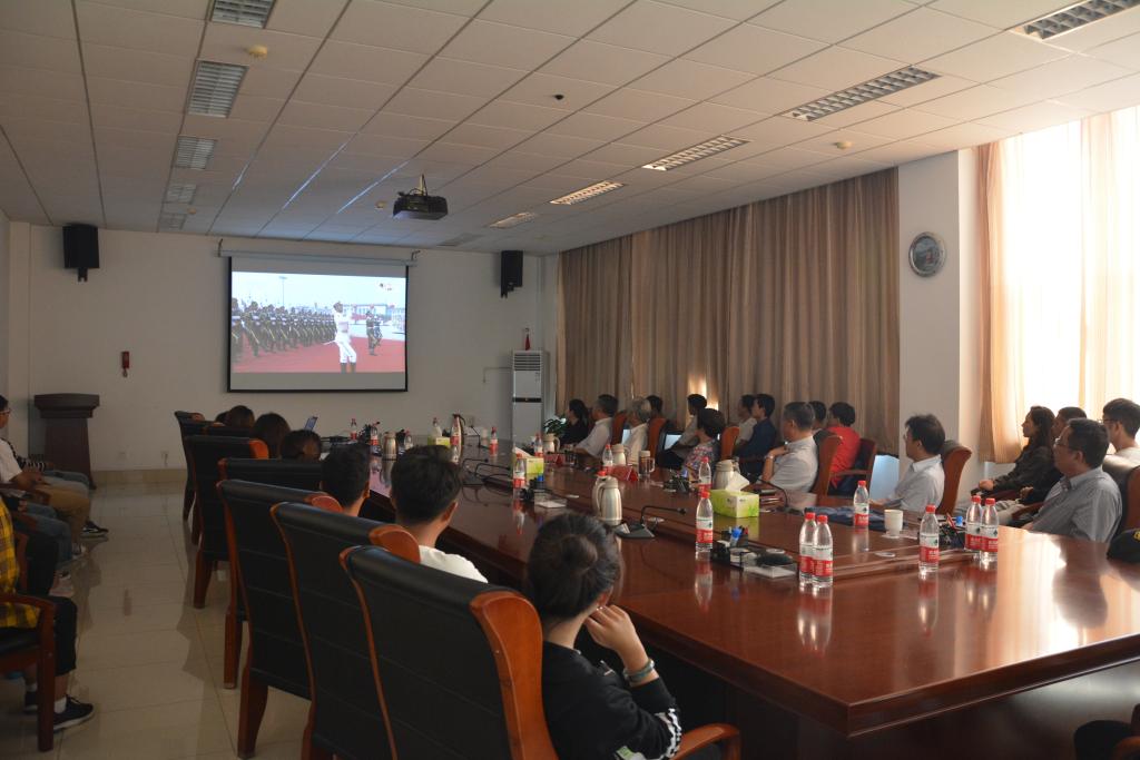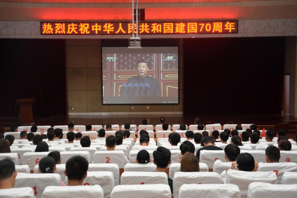 盛事华章,普天同庆。10月1日上午,学校组织国庆假期留校师生在第一会议室、学术报告厅、食堂、学生宿舍,通过网络、电视等多种形式,积极收听收看新中国成立70周年国庆大阅兵盛典,营造共享伟大荣光、共铸复兴伟业的浓厚爱国氛围。