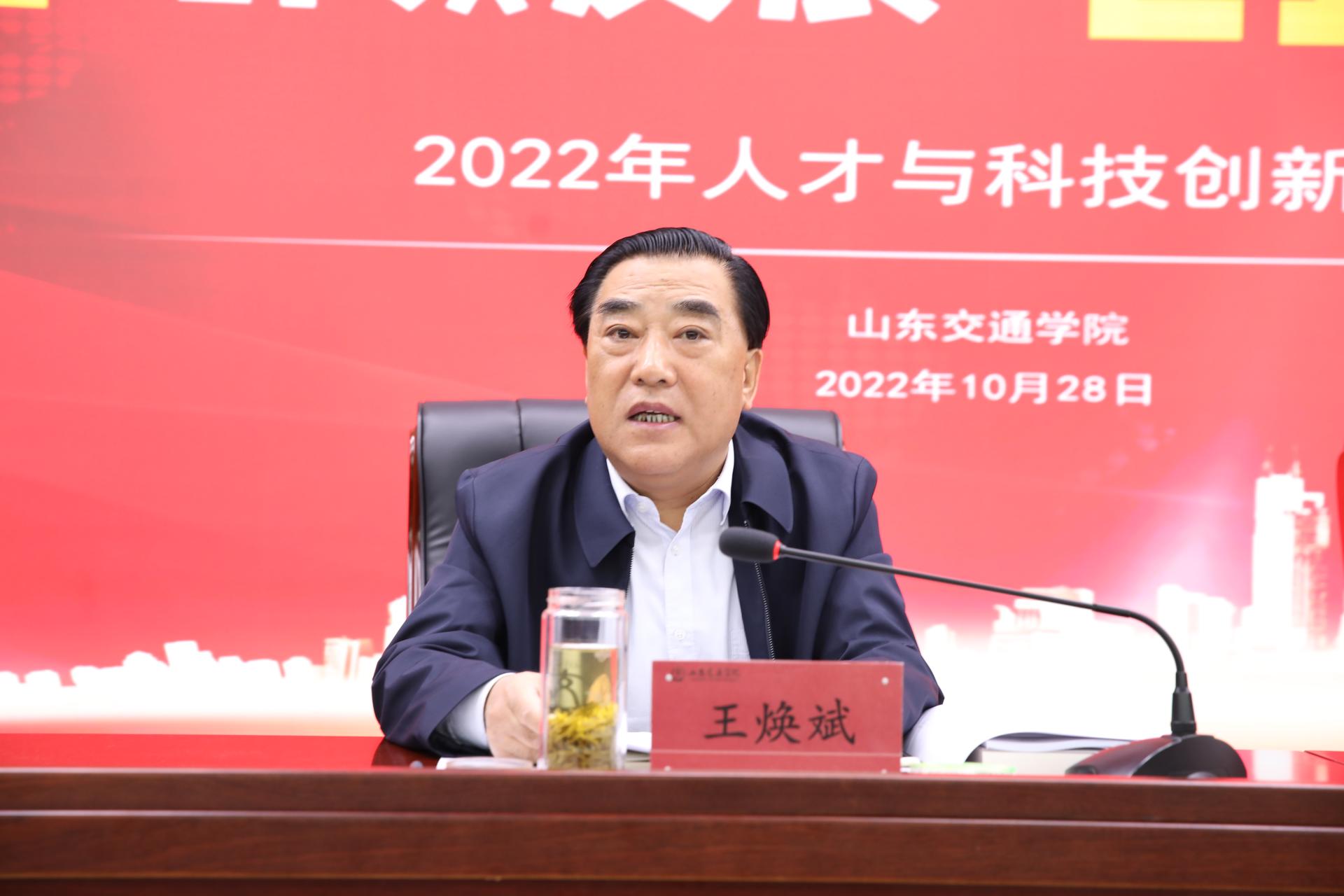 王焕斌表示,在全国上下掀起学习贯彻党的二十大精神热潮之际,学校召开2022年人才与科技创新大会,恰逢其时。他指出,学校自第三次党代会以来,加强高层次人才引领的人才引育体系建设,全面抓紧抓实“基础研究上水平、应用研究强特色”的双轮驱动战略,人才集聚效应逐步显现,科技成果呈现量质齐升。在人才队伍建设方面,先后引育国家级人才申刚、陈国栋,国家级重点人才工程教授于雷等高层次人才,迎来了学校发展历史上“人才荟萃、贤者云集”的人才高峰。在科研方面,连续获得国家科技进步二等奖、山东省科技进步一等奖、山东省技术发明一等奖、山东省人民政府决策咨询奖二等奖等重要奖项,科研到账经费连续3年过亿元,呈现出良好发展局面。