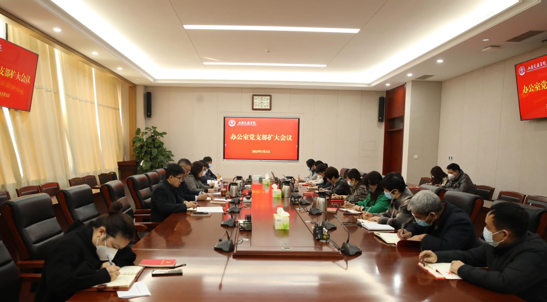 会议还传达学习了学校党委书记王焕斌2023年春季学期开学会议上的讲话精神和学校2023年工作要点,安排部署了办公室党支部组织生活会等相关工作。