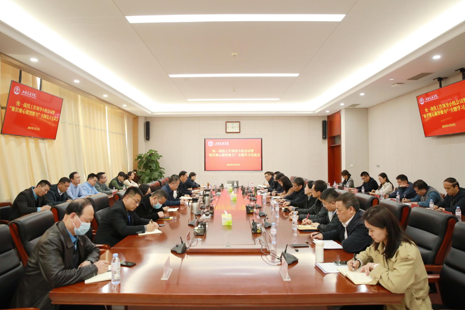 3月23日,学校党委在长清校区明德楼303会议室召开统一战线工作领导小组会议暨“聚识聚心聚智聚力”主题学习交流会。党委副书记李贞涛,党委委员、党委宣传部部长周颜玲出席会议。会议由李贞涛主持。