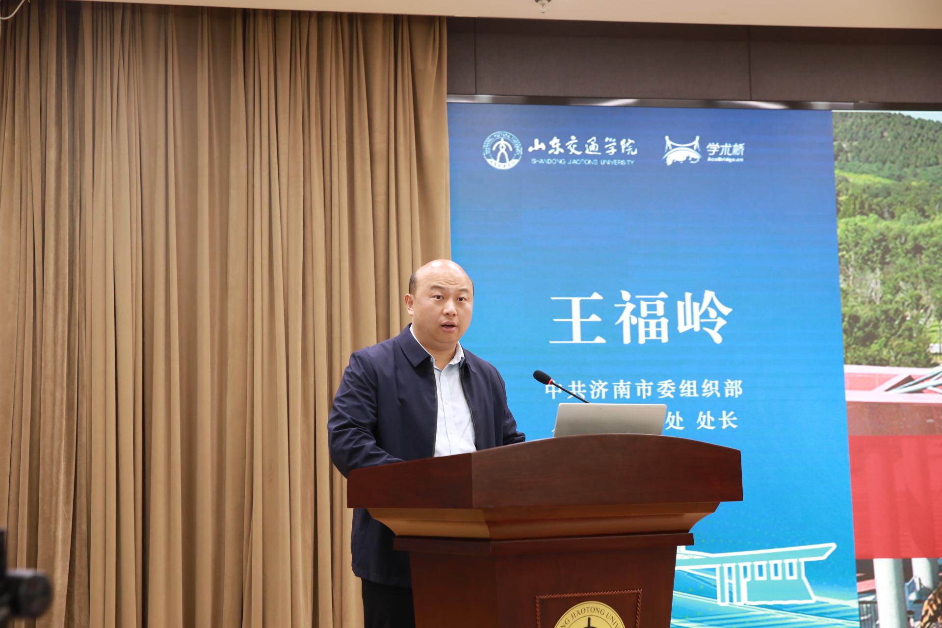 3月31日上午,学校在长清校区举办以“才聚泉城 凤鸣交通”为主题的第一届青年学者国际论坛。山东省教育厅人事处(教育人才处)处长袁广全通过线上方式出席主论坛。中共济南市委组织部人才工作一处处长王福岭;学校党委书记王焕斌,党委副书记、院长陈松岩,党委副书记李贞涛,党委委员、副院长姜华平,党委委员、副院长来逢波,党委委员、党委宣传部部长周颜玲出席主论坛。主论坛由陈松岩主持。
