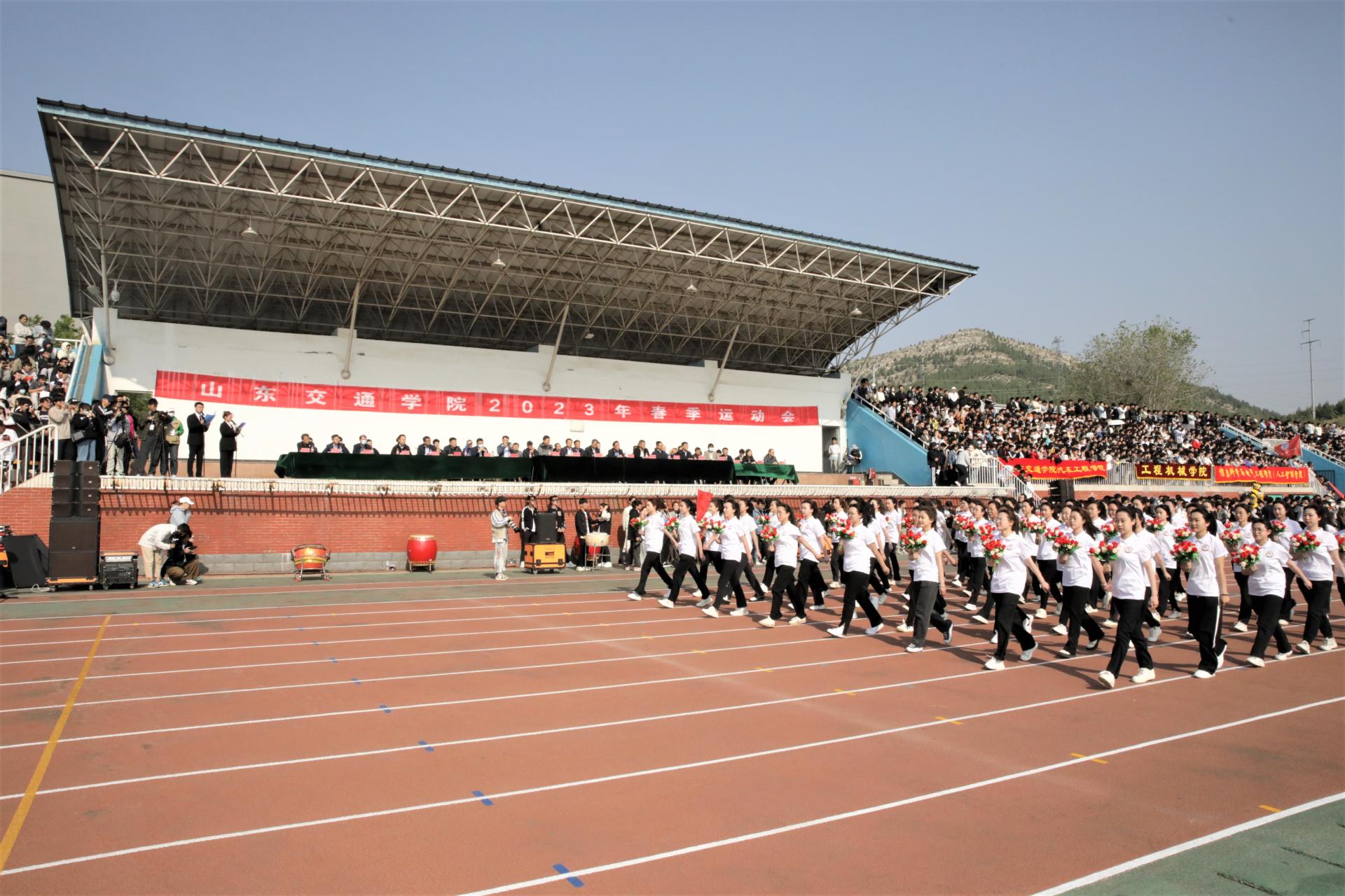 伴随着激昂的《运动员进行曲》,国旗护卫队、彩旗队、鲜花队、军魂连、裁判员方队以及长清校区13个二级学院代表队,迈着整齐坚定的步伐,在嘹亮的口号声中依次走过主席台,充分展示了我校师生蓬勃向上、积极进取的精神面貌。
