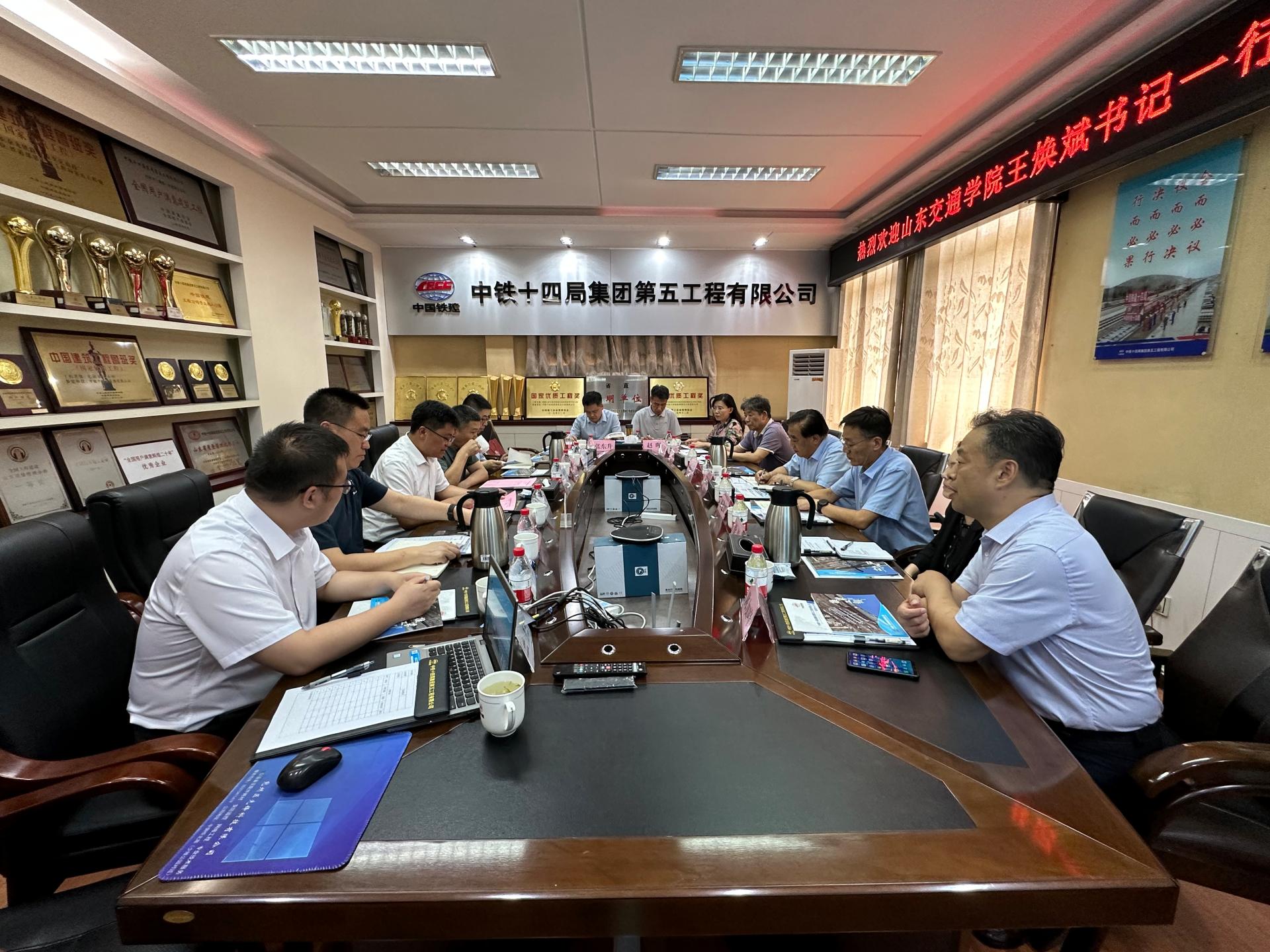 7月4日下午,学校与中铁十四局集团第五工程有限公司举行产教融合实习实训基地揭牌仪式并签署合作协议。学校党委书记王焕斌,党委委员、副院长来逢波;中铁十四局集团第五工程有限公司副总经理、总工程师邵小良,架梁分公司经理刘元宝出席活动。会议由刘元宝主持。