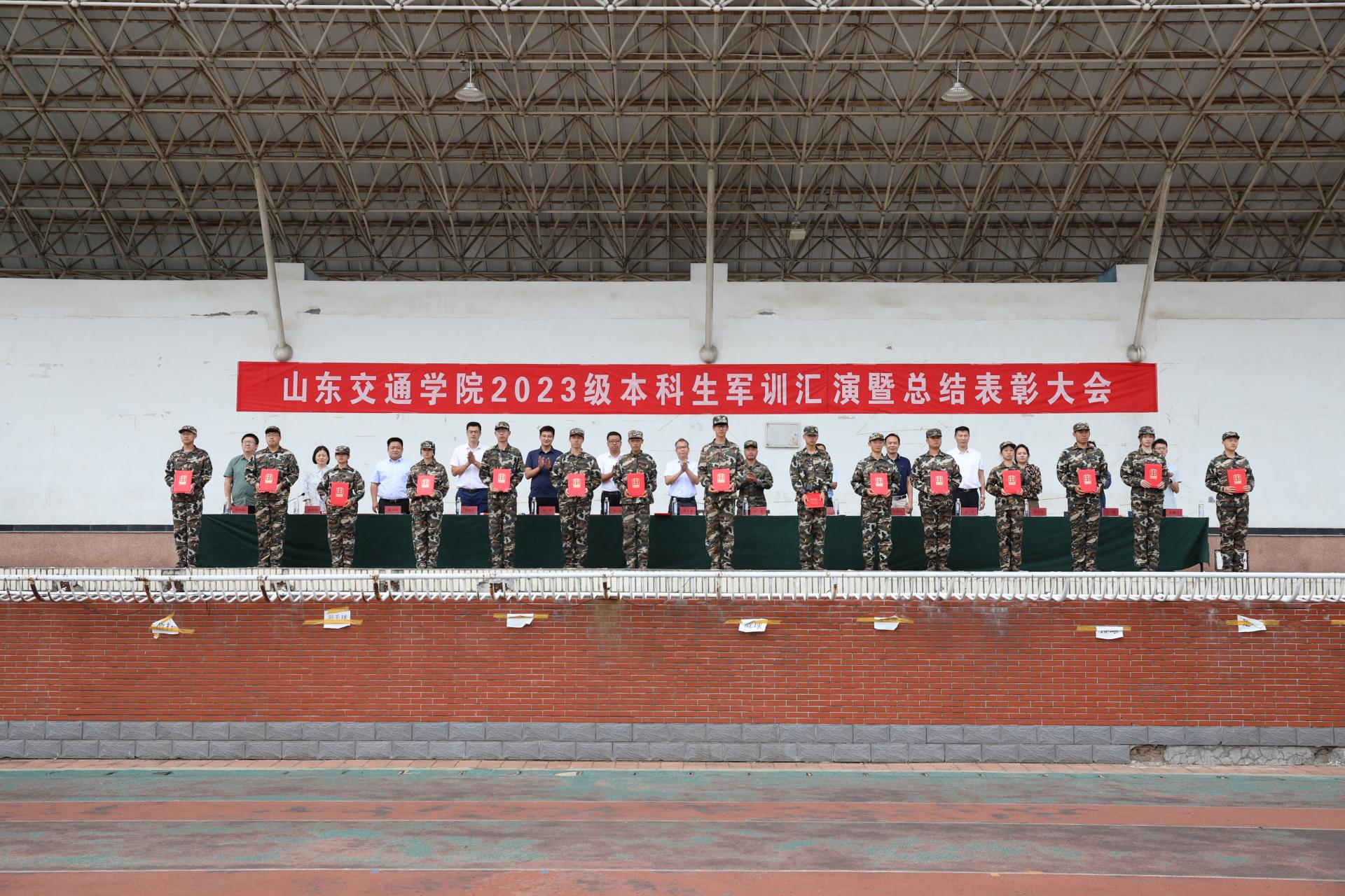 9月23日上午,学校2023级本科生军训汇演暨总结表彰大会在长清校区、威海校区体育场举行。学校党委副书记李贞涛,中国人民武装警察部队山东总队机动支队副大队长出席大会。