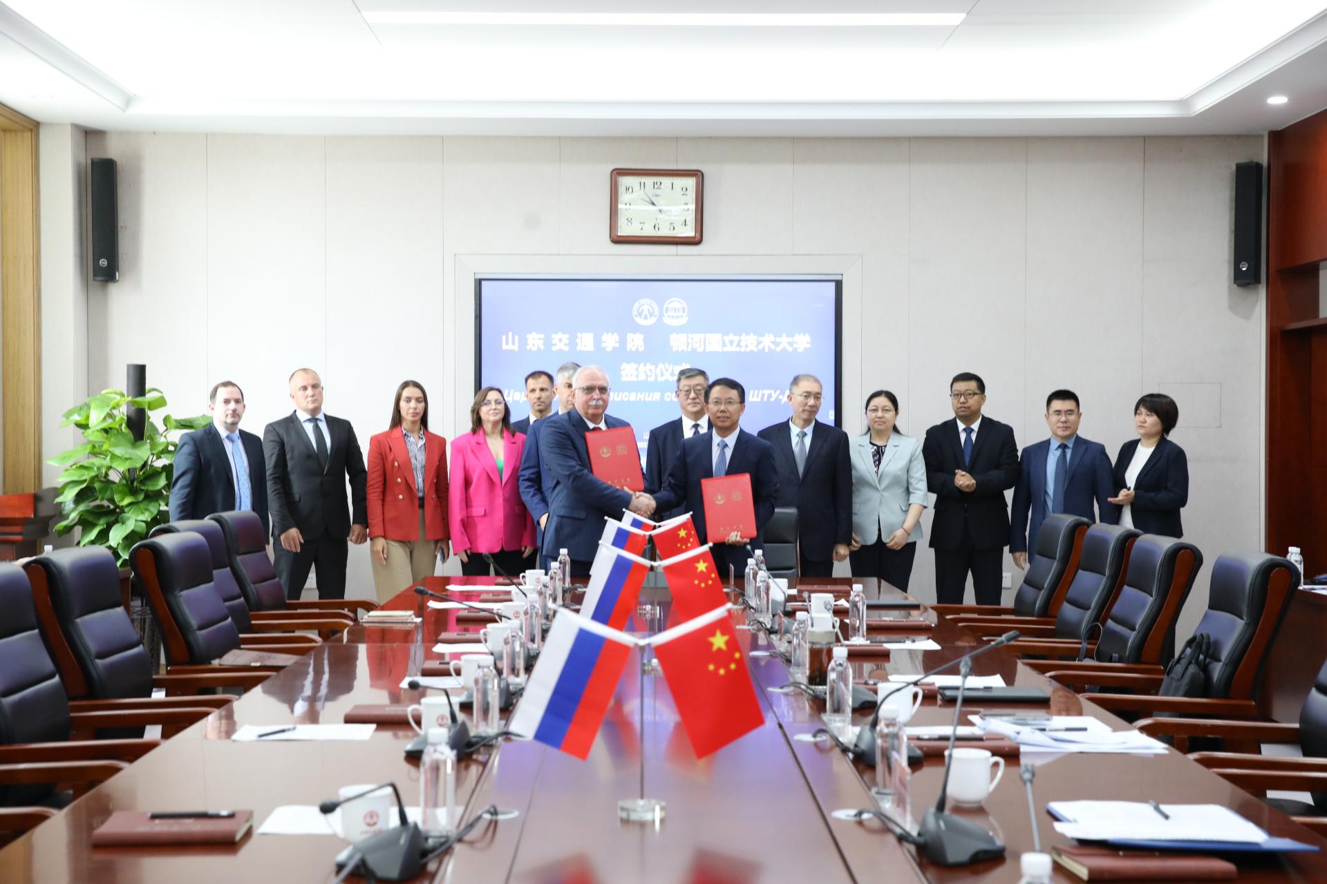 陈松岩对远道而来的访问团一行表示热烈欢迎,对顿河畔罗斯托夫市参加2023世界友城论坛暨友好省州领导人大会开幕式并与济南市签署合作意向书表示祝贺,对顿河畔罗斯托夫市政府在我校与顿河国立技术大学合作举办顿河学院发展建设中提供的支持表示衷心感谢。他表示,山东交通学院与顿河国立技术大学是多年合作的老朋友、好兄弟,双方将凝聚共识,把顿河学院建设成为特色鲜明、质量一流的国际学院,打造成为产教融合、协同发展的国际平台。