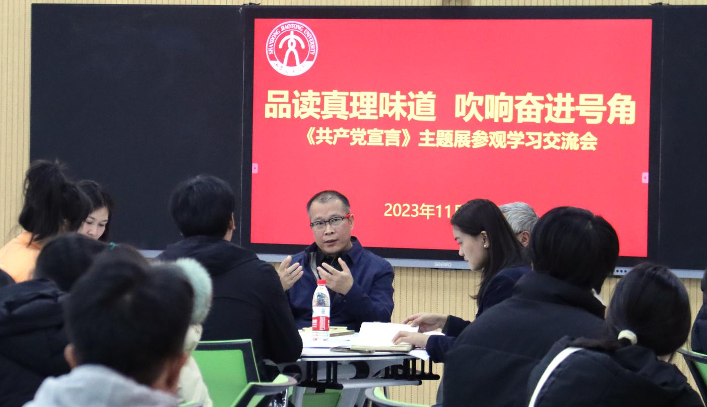 李贞涛以《品读真理味道 吹响奋进号角》为题,为青年学生讲述了我校《共产党宣言》主题馆的创建历程、《共产党宣言》版本收藏情况,以及如何从中汲取奋进力量。他指出,《共产党宣言》主题馆是我校交通特色文化育人体系的又一重要补充,是开展大学生思想政治教育的重要载体,同学们要充分利用好这一资源,进一步激发爱国情,立好交通报国志。