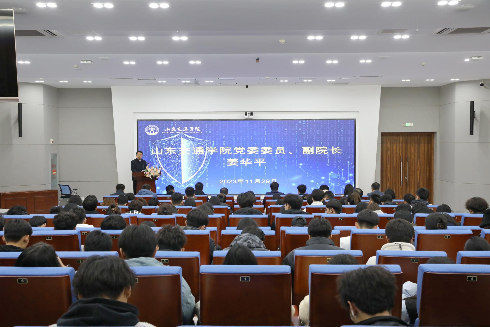 11月29日下午,学校在长清校区机电楼B座107会议室举行网络安全教育周启动仪式。学校党委委员、副院长姜华平,山东信息协会会长周传玉,山东人才信总科技有限公司总经理李亮,三六零数字安全科技集团有限公司山东区域教育业务负责人李杨等出席活动。