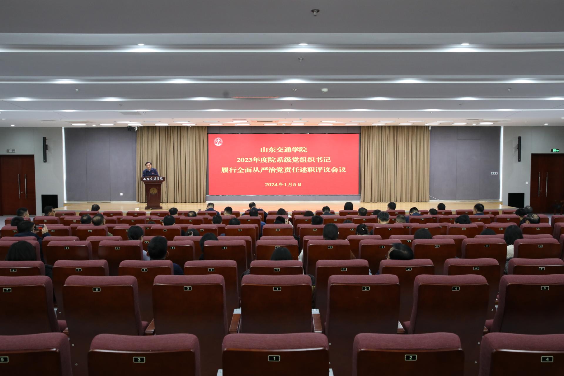 1月5日下午,学校在长清校区明德楼101报告厅召开2023年度院系级党组织书记履行全面从严治党责任述职评议会议。学校党委领导班子成员出席会议,省委教育工委组织处副处长王丽娜到会指导。会议由党委书记王焕斌主持。