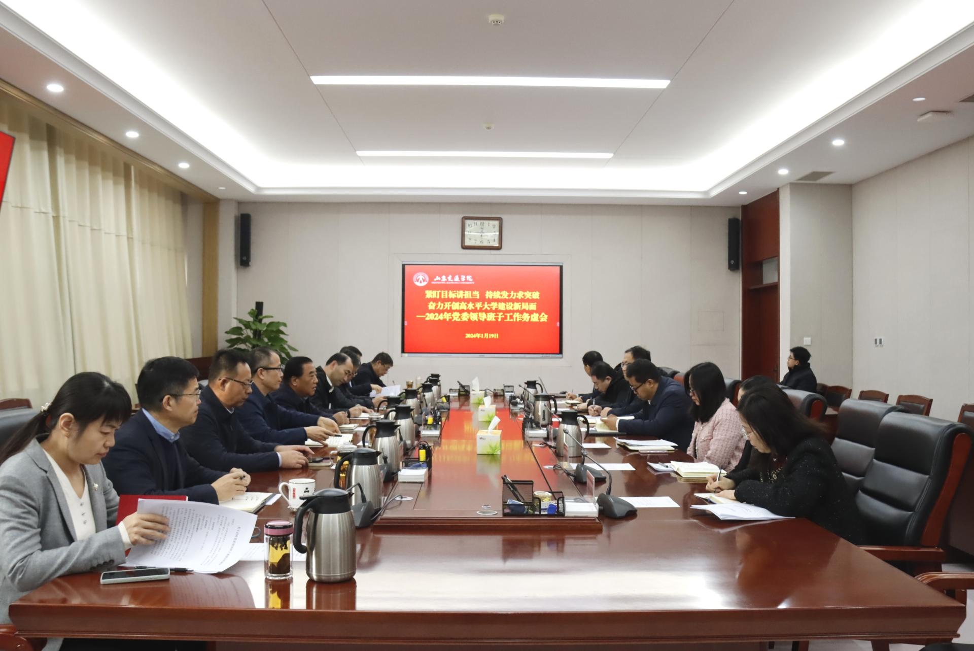 党委副书记、院长孔伟金聚焦“形势与方位”“目标和任务”“重点和突破”三个方面谈了对学校建设发展的系统思考和整体谋划。他指出,2024年要持续深入贯彻学校第三次党代会精神,紧紧围绕申硕任务和更名大学工作,齐心协力抓落实、担当作为促实效,用心用力抓好学科建设、标志性科研成果产出、社会服务、师资队伍、人才培养质量、经费和资源配置、改革创新、党的建设等八个方面工作,努力拓宽视野、打开格局、提升标准,以一往无前的奋斗姿态和只争朝夕的精神状态,为全方位推动学校事业高质量发展作出积极贡献。