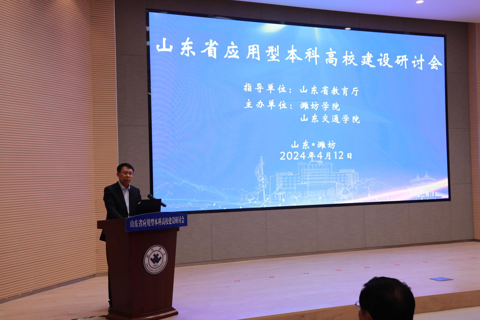 4月12日,山东省应用型本科高校建设研讨会在山东潍坊召开。潍坊学院党委书记徐梅、学校党委委员、副院长姜华平分别代表主办方致辞。会议特邀省教育厅副厅长孙鲁毅,省教育厅高教处副处长席岩出席。研讨会由潍坊学院党委副书记、院长来逢波主持。