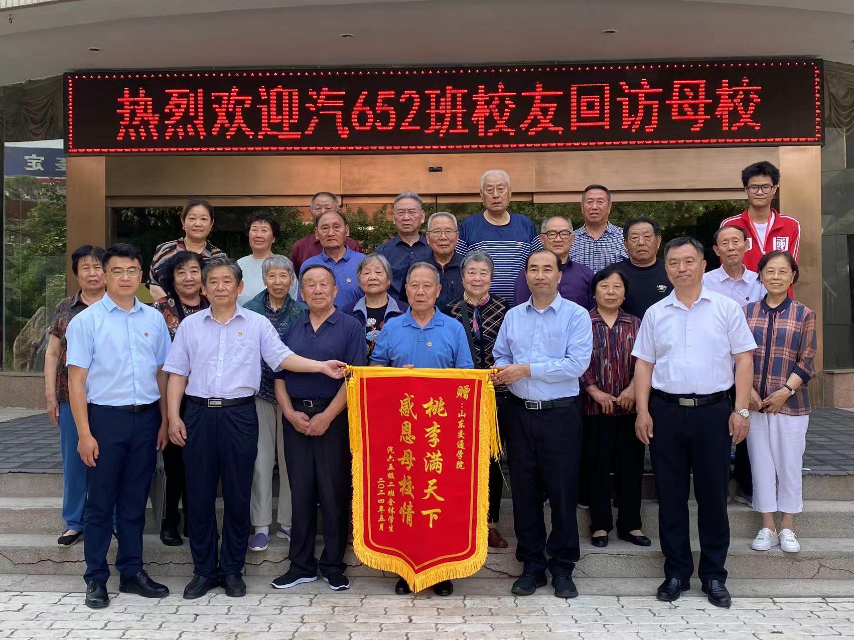座谈结束后,校友们向学校赠送锦旗并合影留念,来访校友集体参观了无影山校区、长清校区校园以及校史馆、校友广场等。