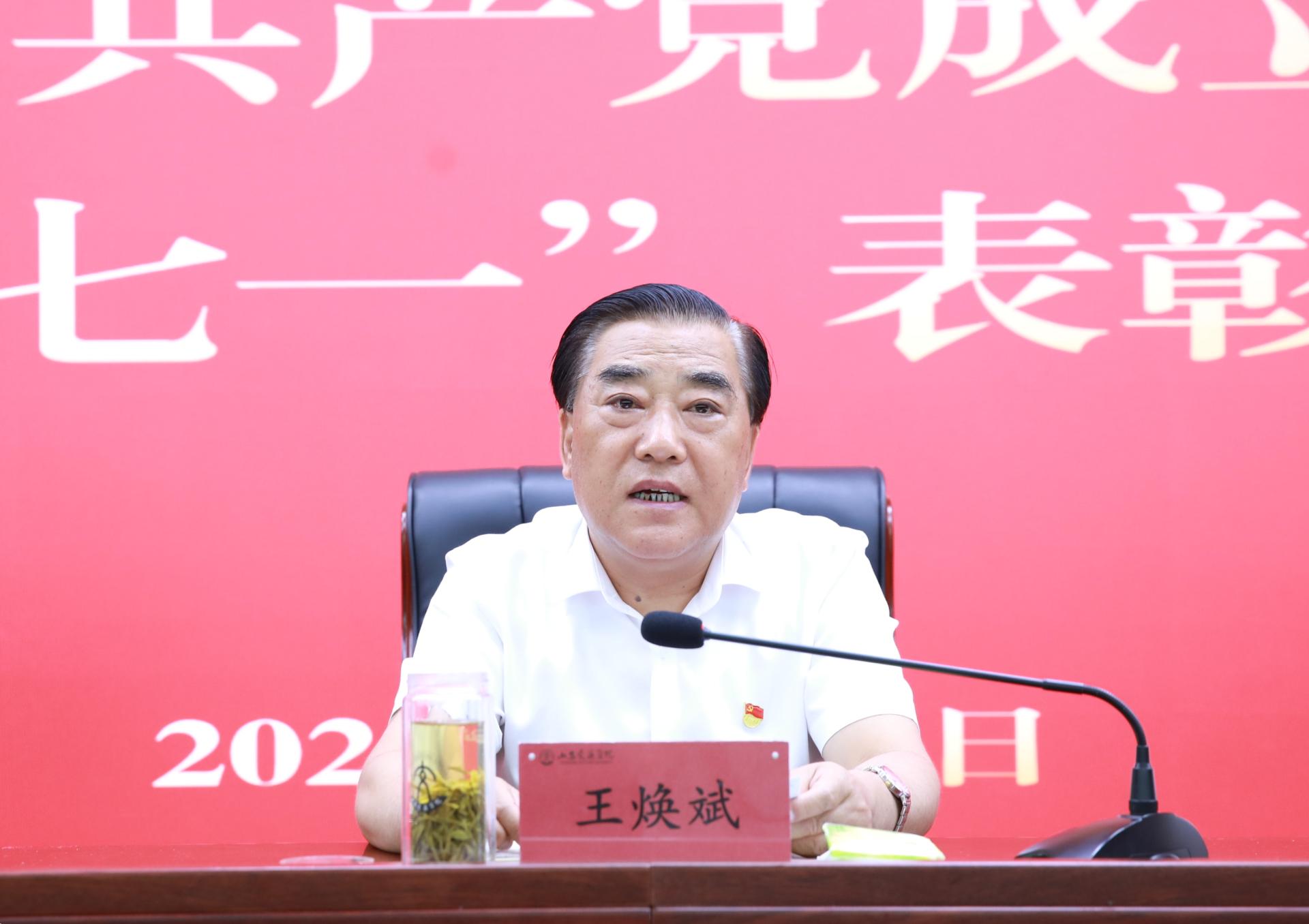 党委书记王焕斌在讲话中代表学校党委向全体党员同志致以节日问候,向受到表彰的先进集体和个人表示热烈祝贺,并向“光荣在党50年”老党员们致以崇高敬意。他指出,一年来,学校党委始终坚持以习近平新时代中国特色社会主义思想为指导,坚持培根铸魂强思想,不断加强政治引领,广大党员理想信念更加坚定;坚持固本强基出实招,做到“六个到位”抓党建,以“双创”培育为契机全面提升基层党建工作质量;坚持谋实创新见真章,聚力“六个融合”平台建设,以高质量党建引领高质量发展,全力推进各项事业取得新突破。