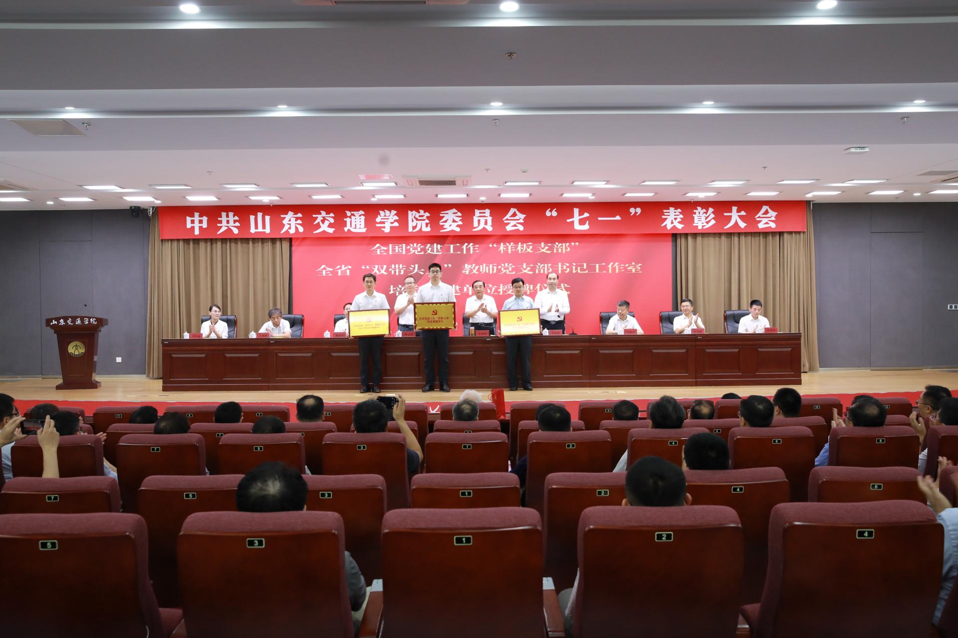 学校党委领导班子成员为第四批全国党建工作样板支部培育创建单位、第三批全省高校“双带头人”教师党支部书记工作室授牌,为受到表彰的先进集体和个人颁发奖牌和证书。
