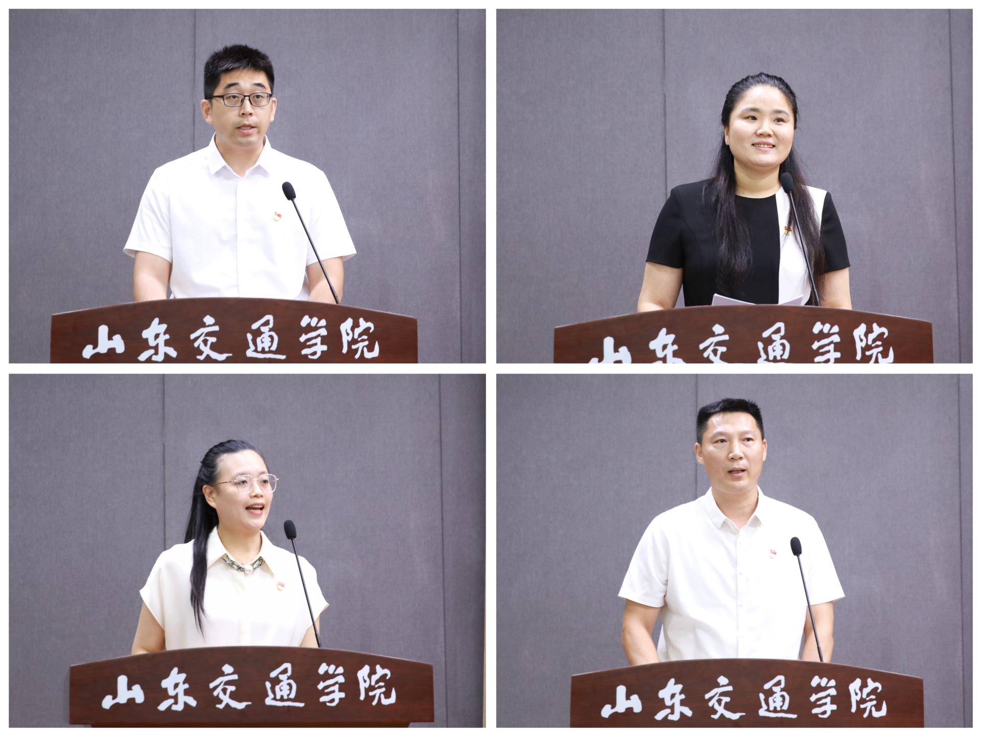 先进基层党组织代表、团委副书记高翔;优秀共产党员代表、交通土建工程学院教授王琨;思想政治工作标兵代表,航空学院团委书记、学生工作办公室主任孙晨;统战工作先进个人代表、信息科学与电气工程学院(人工智能学院)党委副书记庄伟依次交流发言。