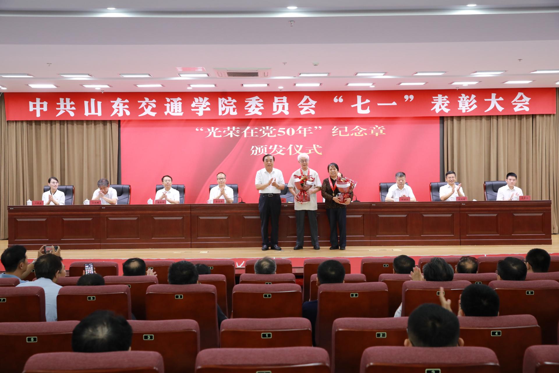 学校“光荣在党50年”党员同志代表;全体处级干部,受表彰的先进集体和个人代表,教师党员和学生党员代表参加会议。威海校区通过视频连线参加会议。