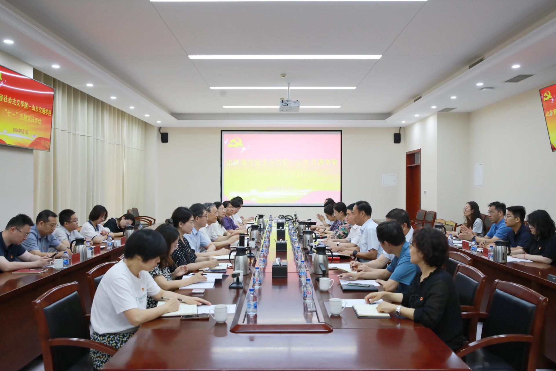 王焕斌代表学校对孙传军一行表示热烈欢迎,对山东省社会主义学院长期以来对我校工作的大力支持表示衷心感谢。他指出,本次活动对各方开拓党建工作思路、提升党建工作水平、强化合作交流具有重要意义,通过支部共建活动,将进一步发挥党建引领作用,深度促进业务工作开展,推动高水平应用型交通大学建设。