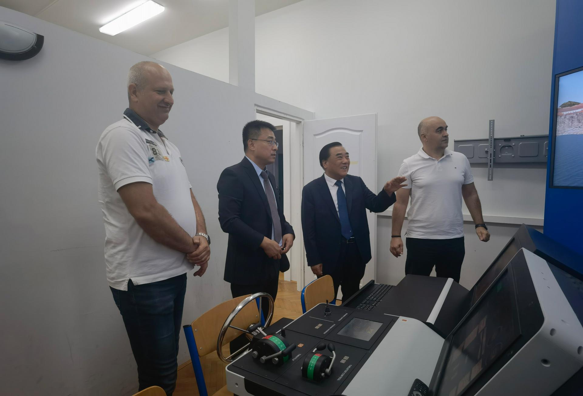 在克罗地亚杜布罗夫尼克,代表团访问杜布罗夫尼克大学,与副校长博伊萨·斯托伊西奇、海事系负责人斯尔丹·武伊契奇以及相关学院负责人座谈,双方就在海事方面开展师生交流和联合科研达成合作意向,王焕斌、博伊萨·斯托伊西奇共同签署两校合作谅解备忘录。访问期间,代表团在博伊萨·斯托伊西奇以及学院负责人陪同下,参观了航海、轮机实验室以及海洋环境治理实验室。