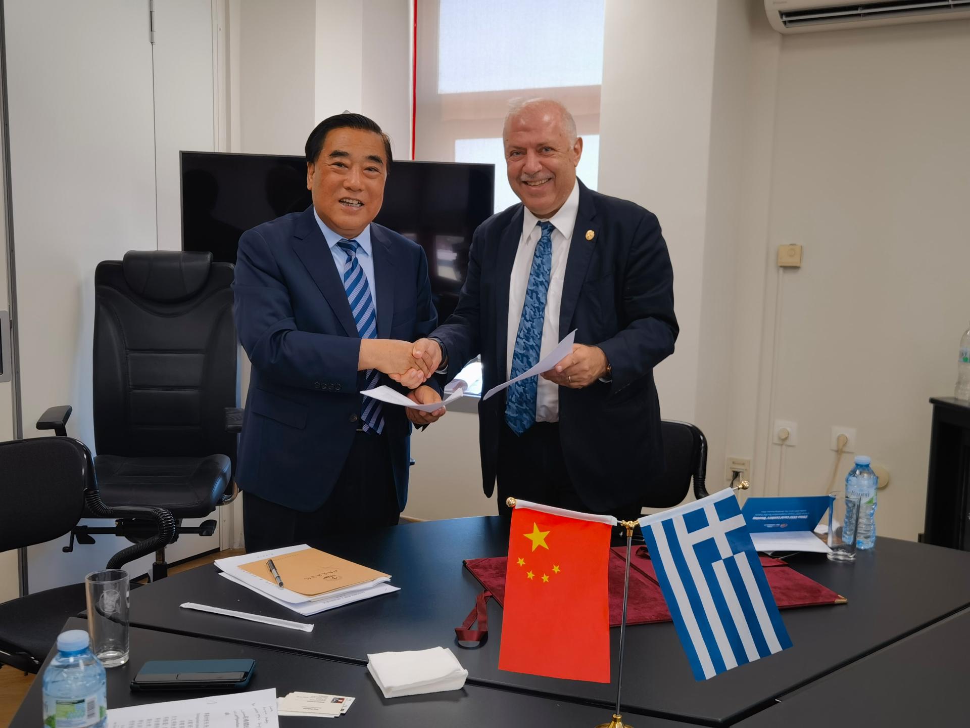 在希腊,代表团赴雅典农业大学访问,与副校长托马斯·巴兹纳斯、农业商务与供应链管理系教授帕纳吉奥提斯等座谈,商讨开展交通物流领域教育教学合作,就共建中国(山东)-中东欧国家产教融合发展中心达成一致意见。赴希腊比雷埃夫斯大学访问期间,与校长麦克·斯发奇亚纳、副校长斯皮罗斯·鲁卡纳斯,以及国际处、海事研究系负责人等座谈,王焕斌、麦克·斯发奇亚纳共同签署合作谅解备忘录,就共建中国(山东)-中东欧国家产教融合发展中心,开展海事管理、国际商务等领域的师生交流、学术科研和人员培训等方面的合作达成一致意见。赴中远海运(比雷埃夫斯)港口有限公司访问期间,代表团现场调研港口业务开展运营情况,与操作部总经理胡彦弘等座谈,了解驻外中资企业用人需求,就产教融合国际化建设、共建海外实习实践基地达成一致意见。