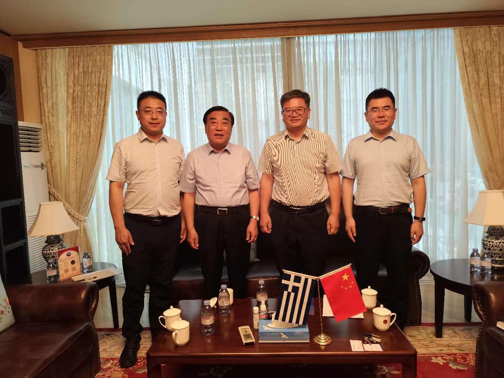赴中国驻希腊大使馆访问期间,与公使衔参赞赖波、一秘王迎座谈,详细了解中资企业在希投资建设、中希文化交流以及高校合作情况。代表团与山东省人民友好使者贡多斯·莱夫特瑞斯会面,就共同推进中希两国教育、产业合作进行座谈。