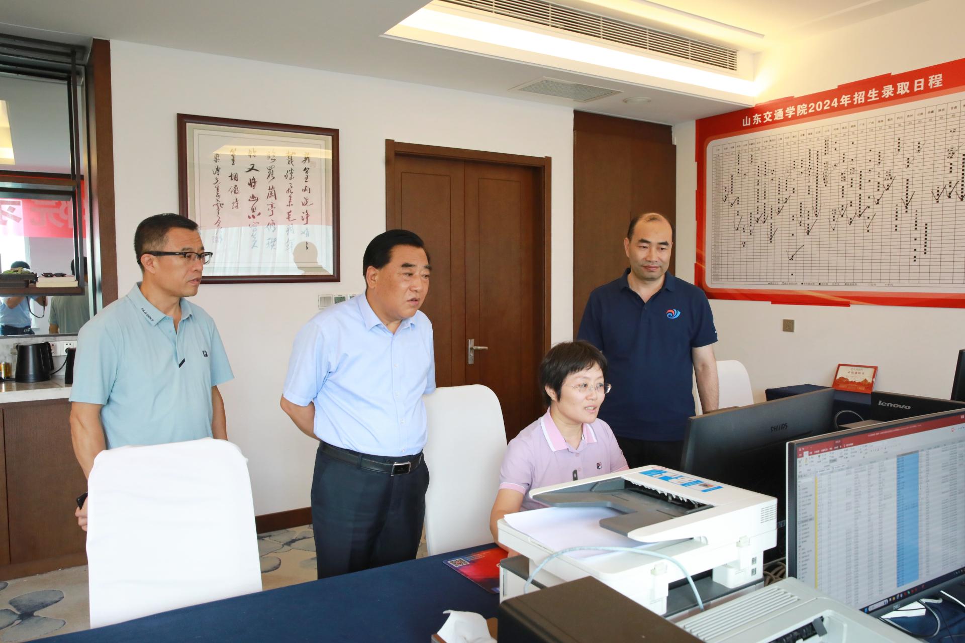 在招生录取现场,王焕斌、孔伟金听取了关于招生录取工作情况汇报,详细了解录取工作安排及进展情况,对今年招生录取工作取得的成绩给予充分肯定。王焕斌、孔伟金指出,招生录取工作责任重大,大家要提高政治站位,确保顺利完成今年招生录取任务的同时,进一步做好录取数据分析,形成分析报告,全面总结录取工作成绩和存在不足;要聚焦学科建设规划和核心竞争力提升,切实提高人才培养质量,回馈广大考生和家长对学校的信任。