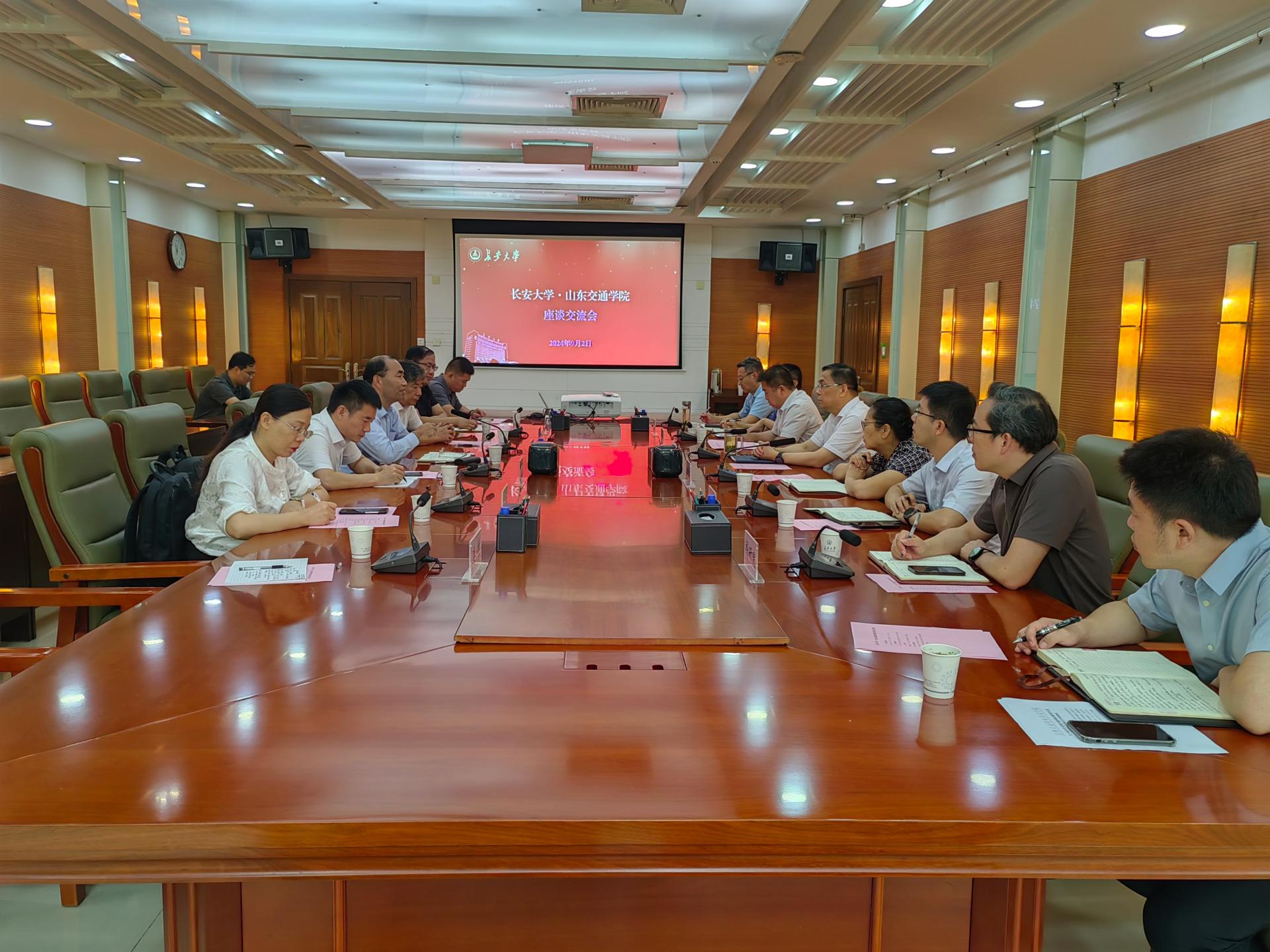 9月2日,学校党委副书记、院长孔伟金,党委委员、副院长王保群,党委委员、副院长李秀领一行赴长安大学调研交流。长安大学党委副书记、校长沙爱民,党委副书记、副校长彪晓红出席座谈交流会。