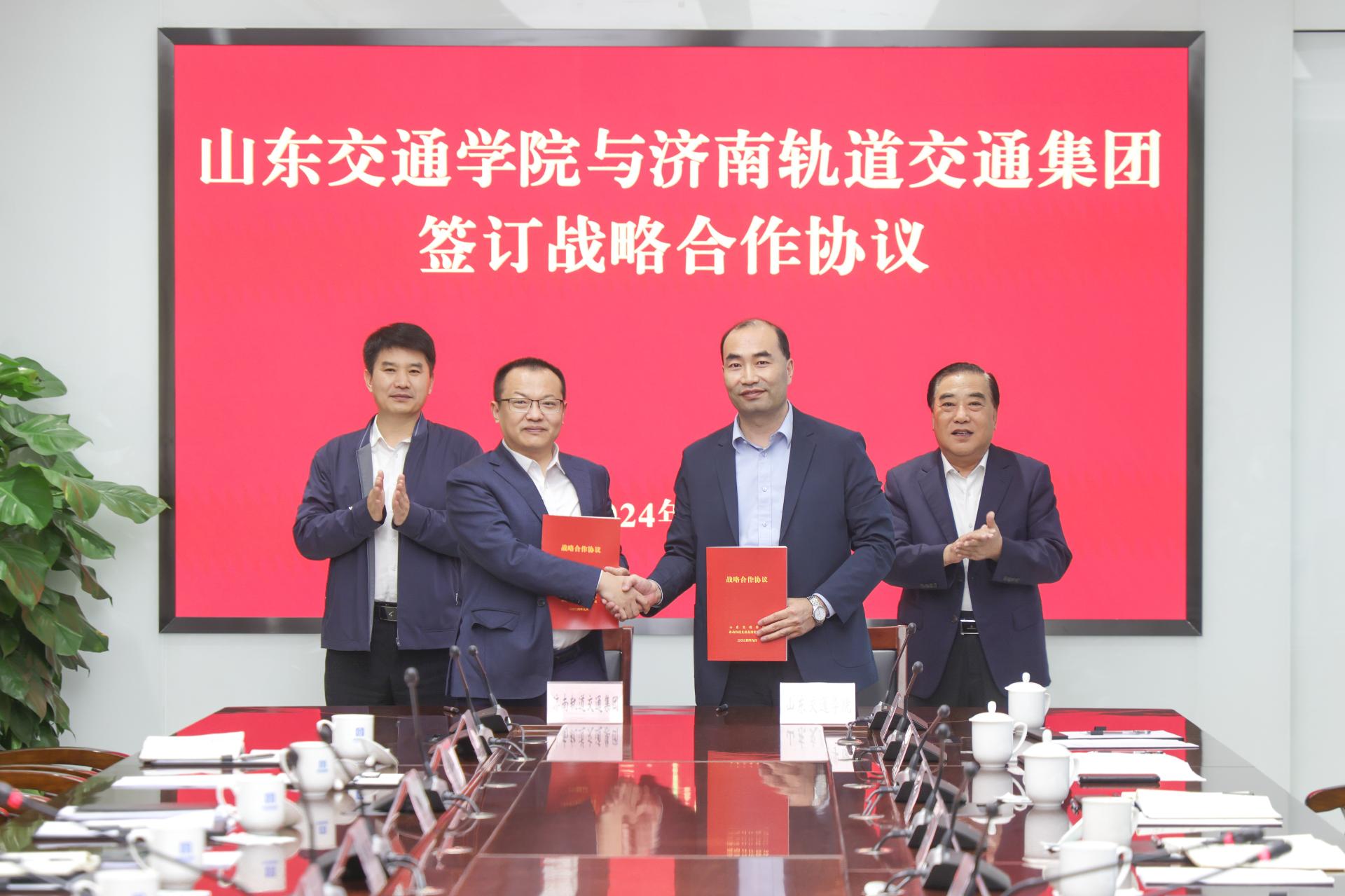 9月30日下午,学校与济南轨道交通集团举行战略合作协议签约仪式。学校党委书记王焕斌,党委副书记、院长孔伟金,党委委员、副院长王保群,党委委员、副院长李秀领;济南轨道交通集团有限公司党委书记、董事长高树金,党委副书记、总经理李虎,党委委员、副总经理卢庆亮,副总经理靳凤玉出席签约活动。