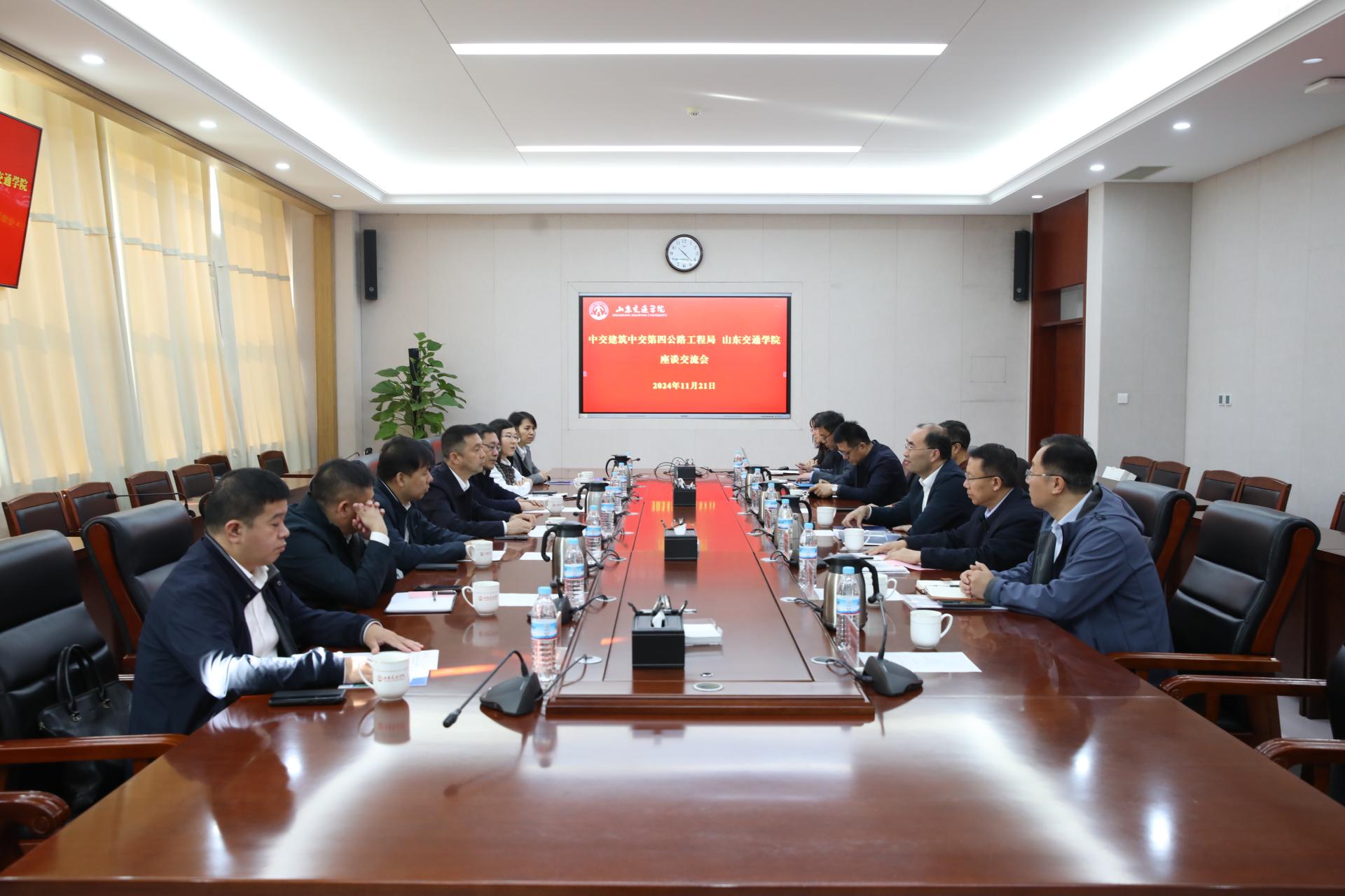 11月21日上午,中交建筑中交第四公路工程局党委书记、董事长姚景武一行7人来校交流座谈。座谈会在长清校区明德楼303会议室召开。学校党委副书记、院长孔伟金,党委委员、副院长姜华平出席会议。会议由姜华平主持。