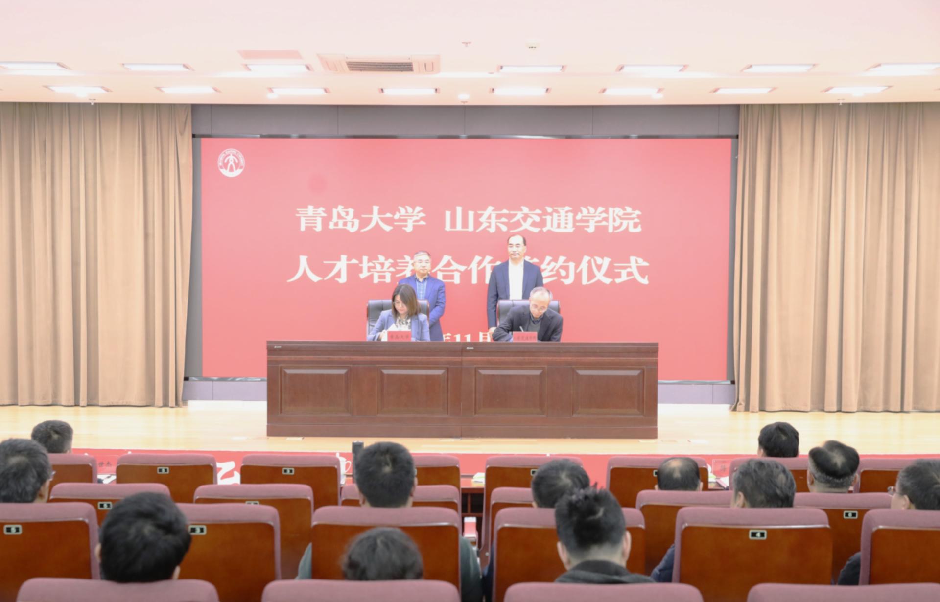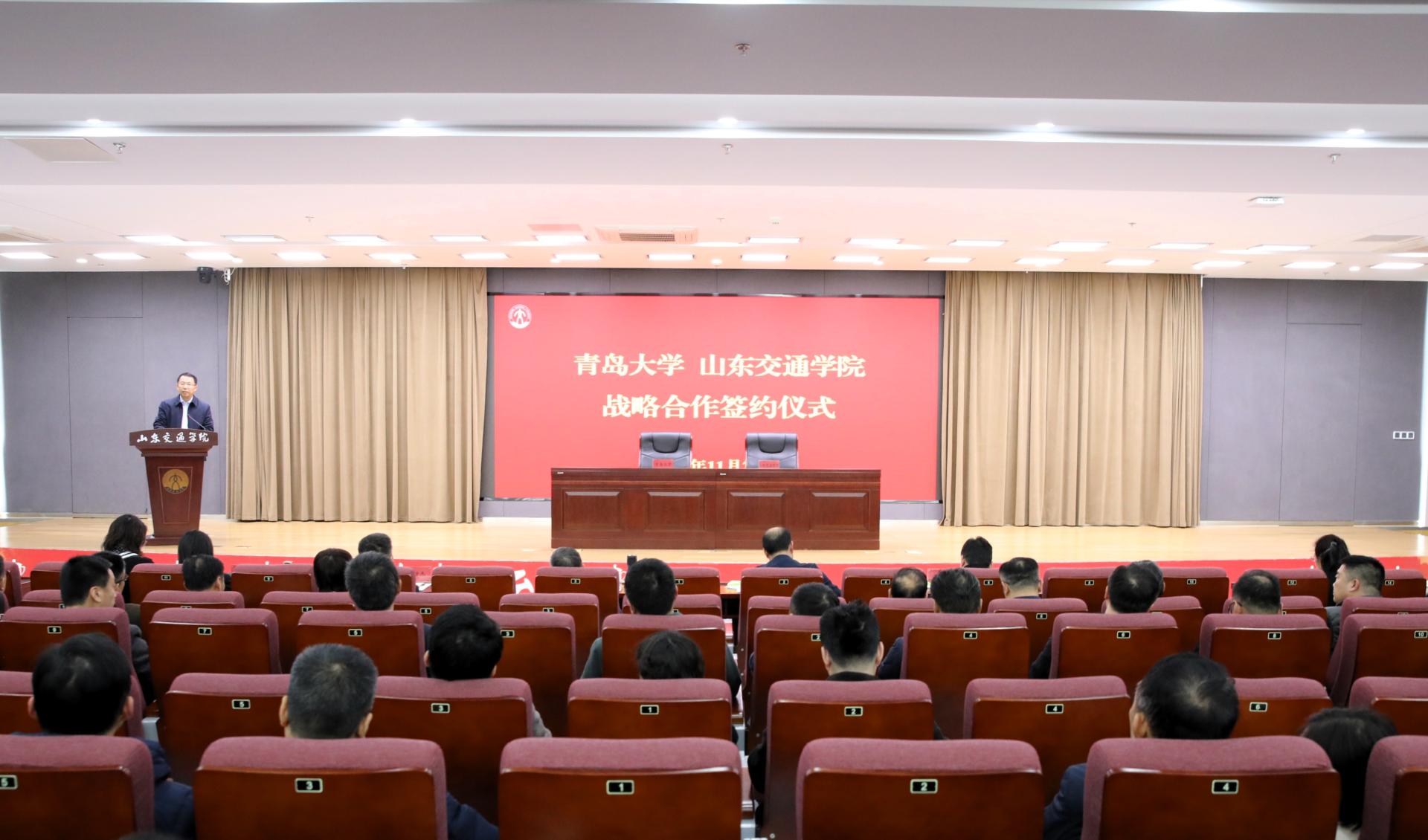 11月28日下午,学校与青岛大学在长清校区明德楼101报告厅签署战略合作协议,青岛大学党委书记胡金焱,党委常委、副校长陈涛;学校党委副书记、院长孔伟金,党委委员、纪委书记、监察专员刘世杰,党委委员、副院长姜华平,党委委员、党委组织部部长王兴盈出席签约仪式,签约仪式由姜华平主持。